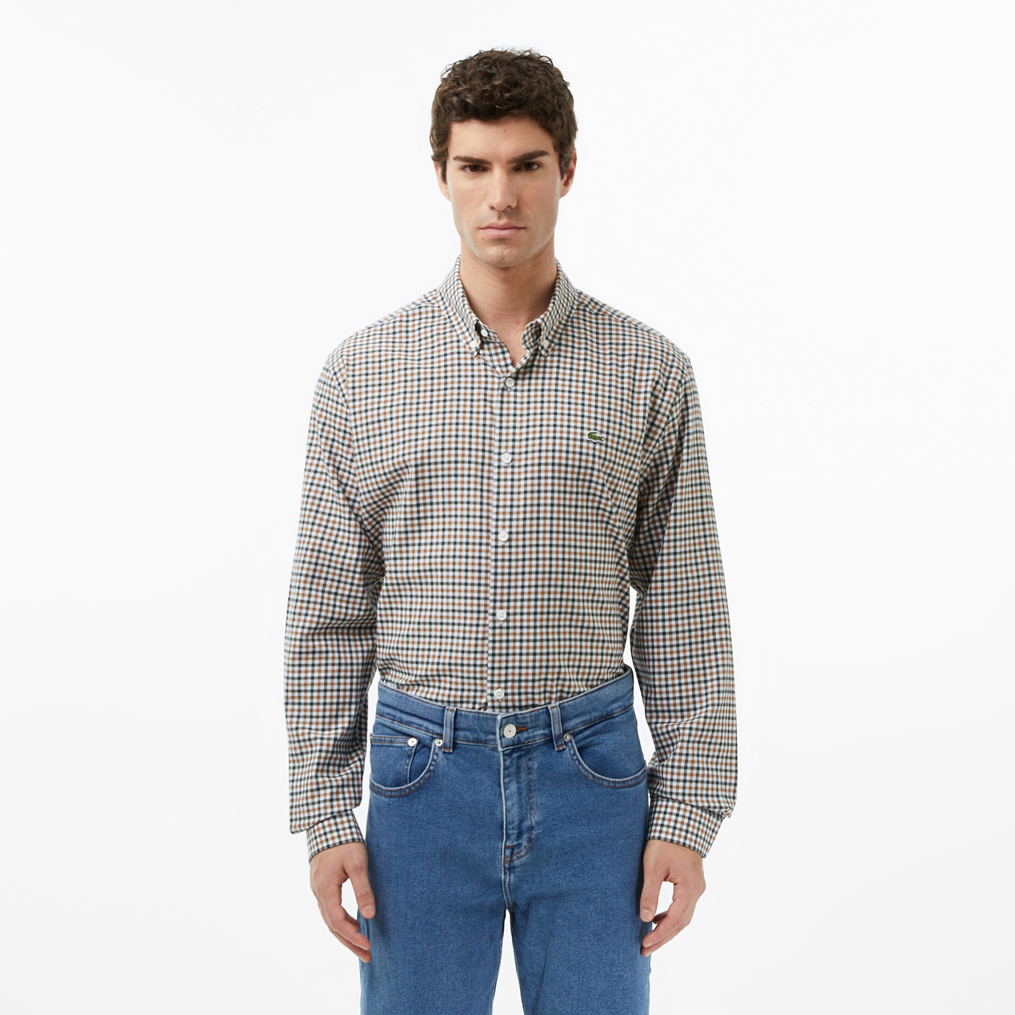 Klasik çizgilerin modern bir yorumla buluştuğu kareli gömlek, zamansız Lacoste stilini günlük şıklığa taşıyor. Yumuşak dokulu pamuk kumaşı gün boyu konfor sunarken, düğmeli yaka detayı görünümü daha düzenli ve zarif bir hâle getiriyor. Göğüsteki ikonik timsah logosu ise modele sofistike bir dokunuş katıyor.