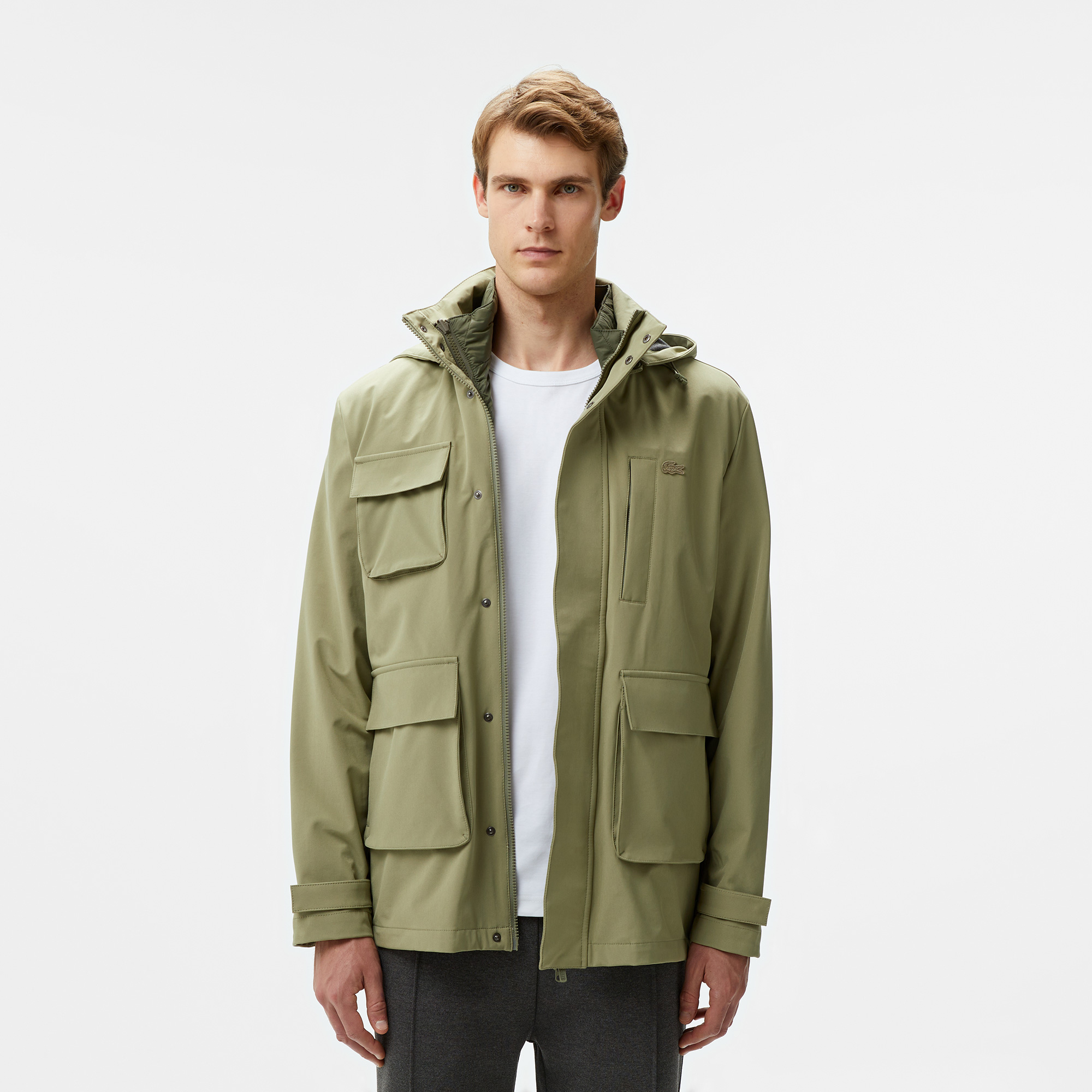 Erkek Regular Fit Kapüşonlu Baskılı Haki Yağmurluk