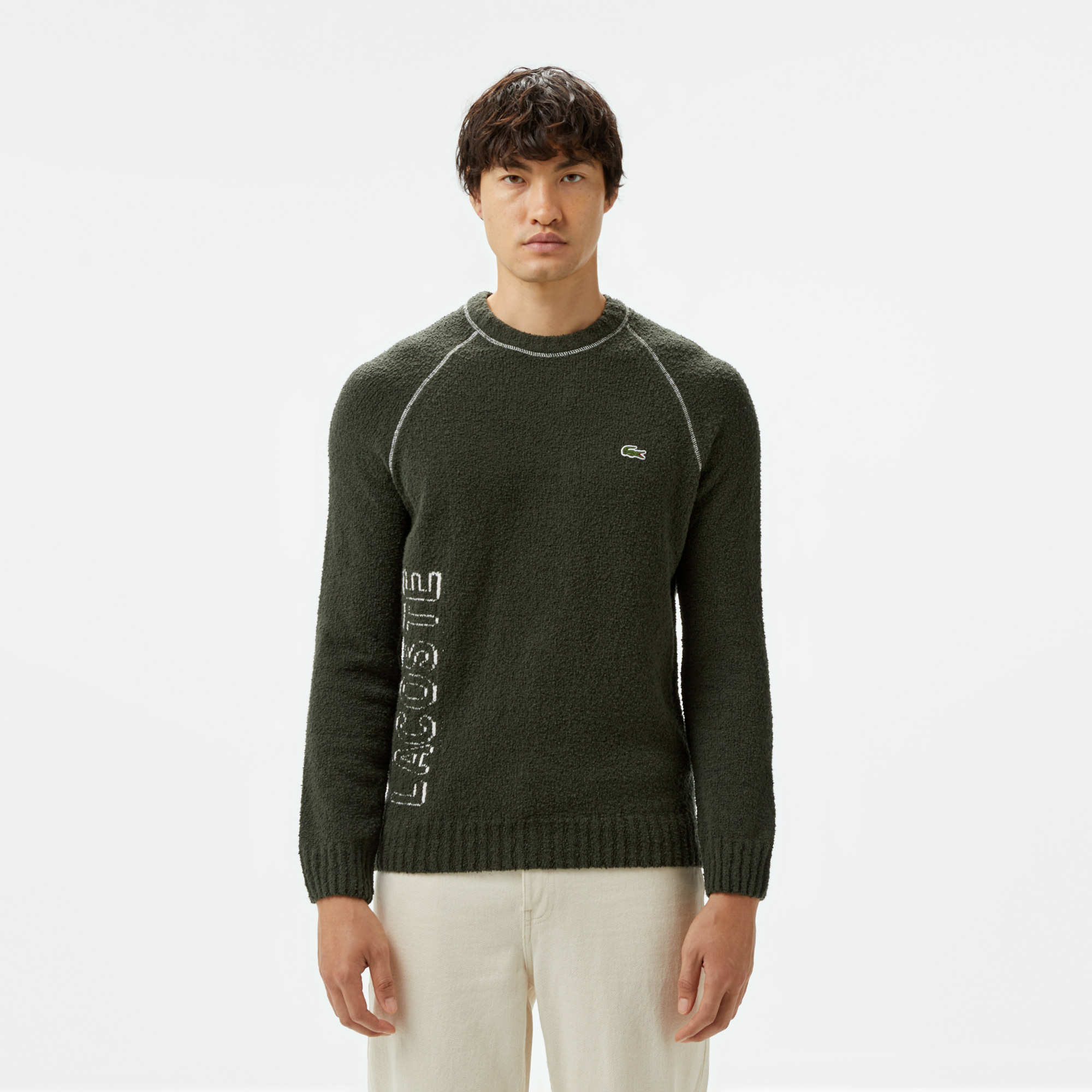 Erkek Relaxed Fit Bisiklet Yaka Baskılı Koyu Yeşil Kazak