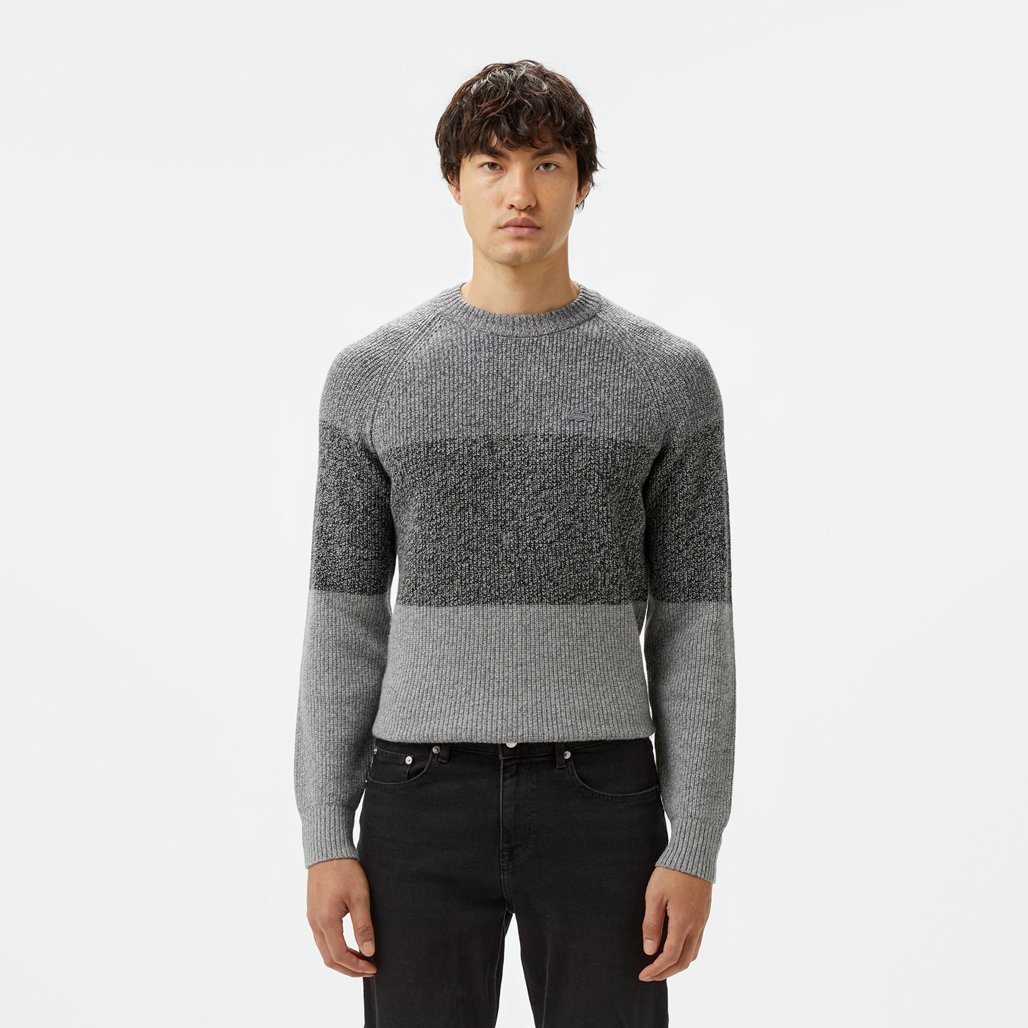 Erkek Relaxed Fit Bisiklet Yaka Renk Bloklu Gri Kazak
