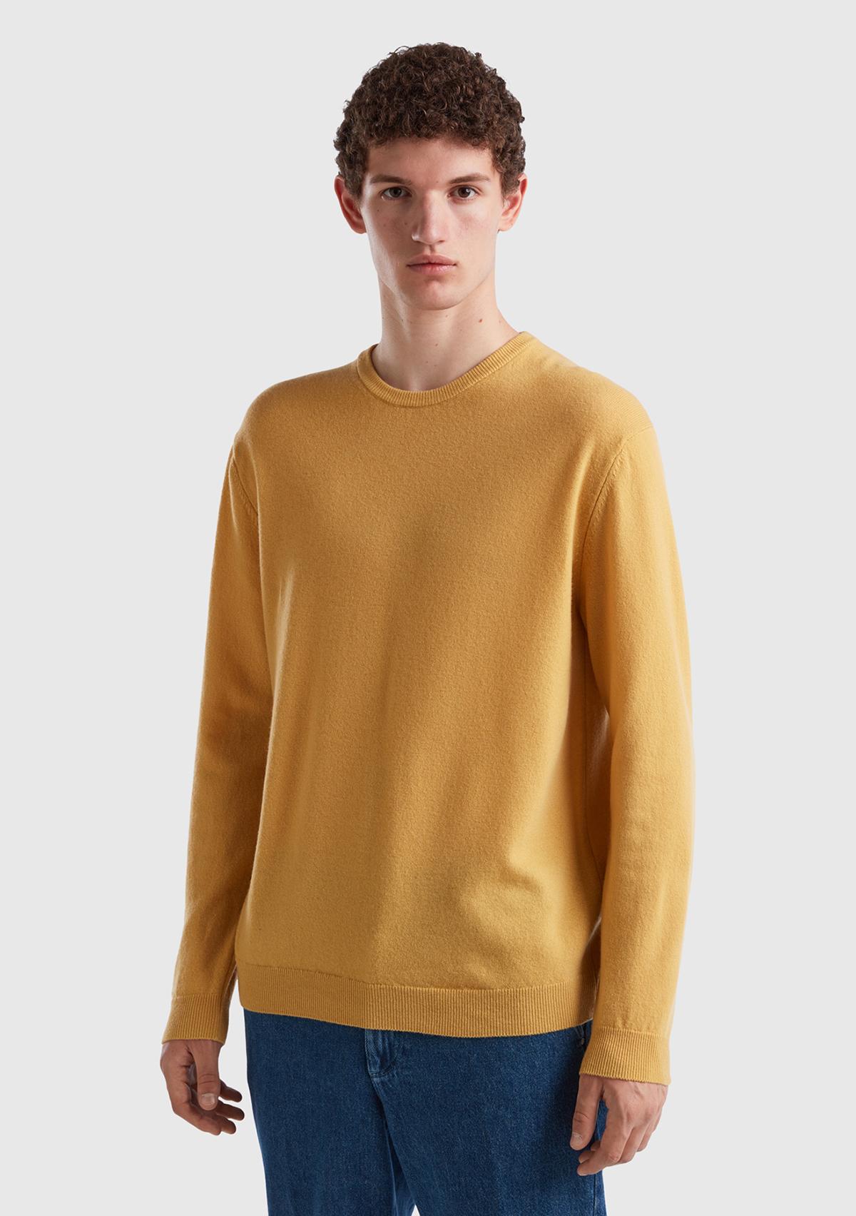 Erkek Safran Sarısı Bisiklet Yaka Merino Kazak. Koyun Yünü İçerir