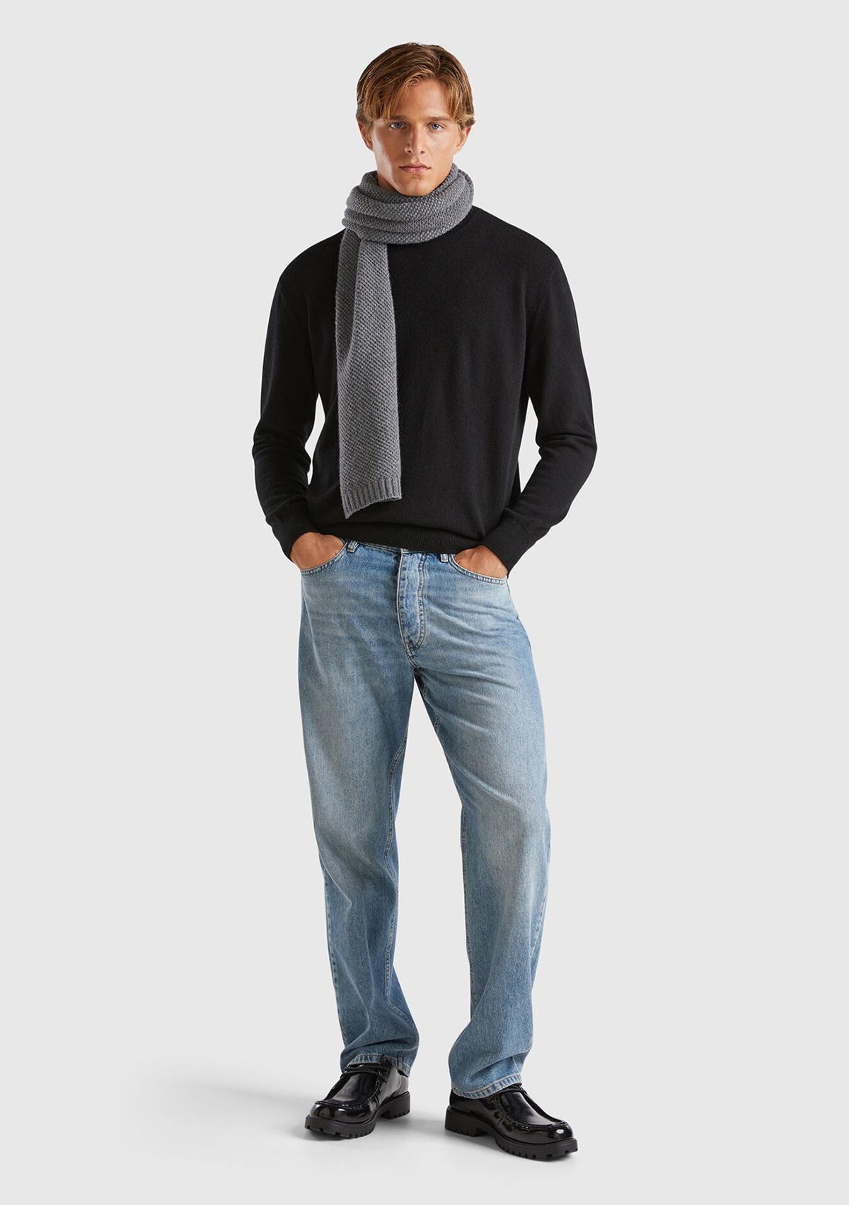 Erkek Siyah %100 Kaşmir Normal Kesim Ribanalı Yuvarlak Yaka Kazak. Keçi Yünü İçerir