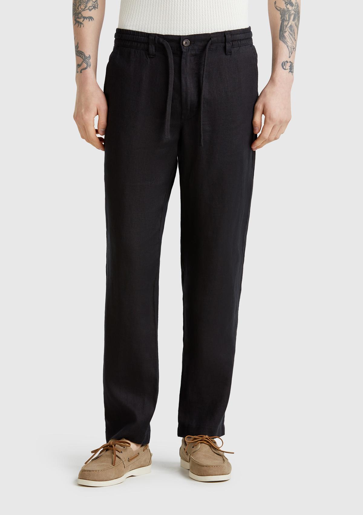 Erkek Siyah %100 Keten Beli İpli Pantolon