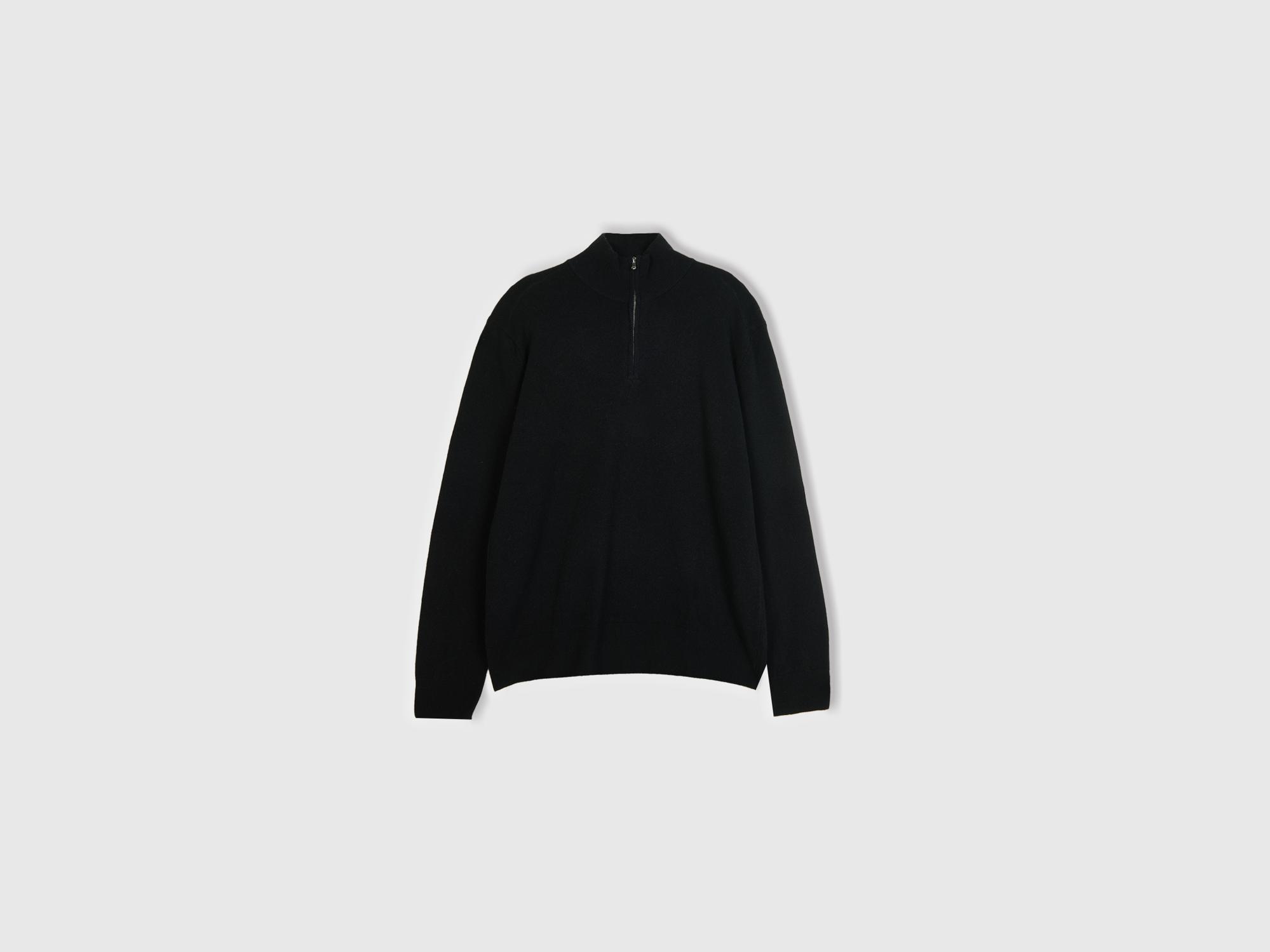 Erkek Siyah %100 Merino Yarım Fermuarlı Yakalı Kazak. Koyun Yünü İçerir