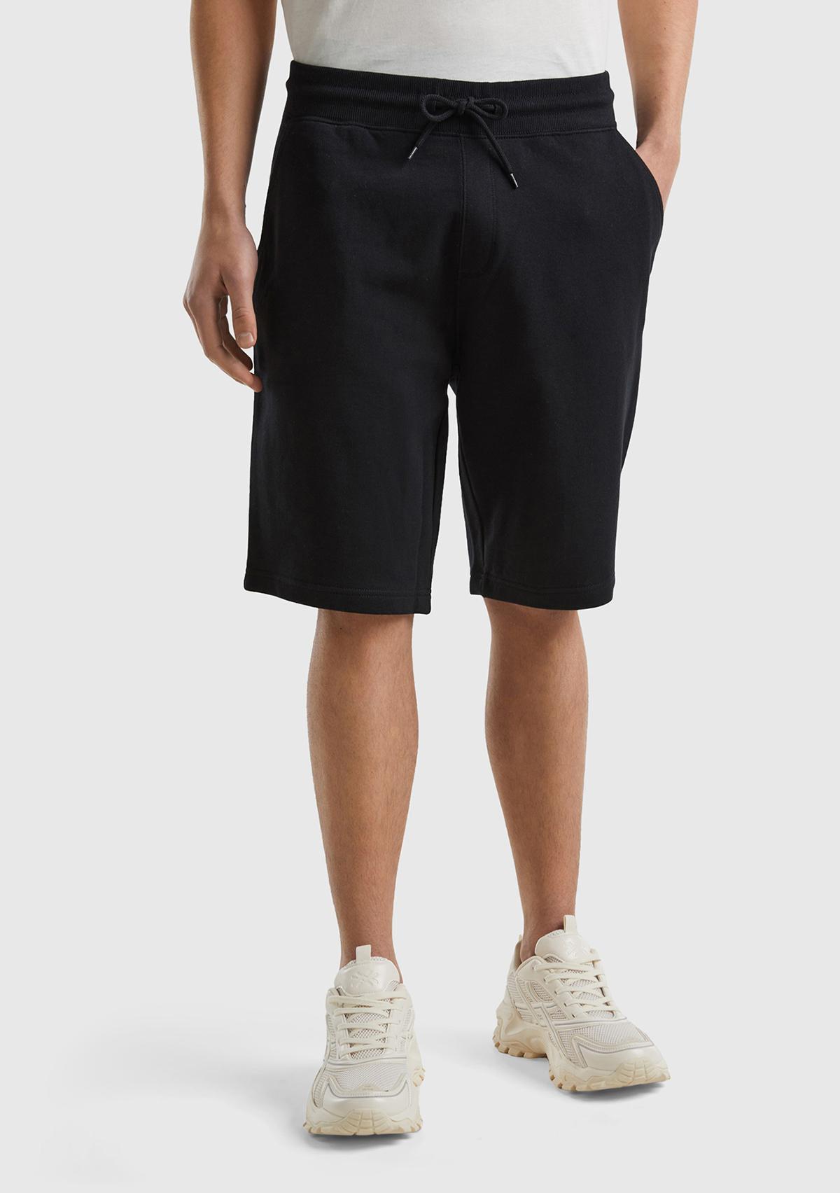 Erkek Siyah %100 Pamuk Logo Detaylı Beli Lastikli Bermuda Şort
