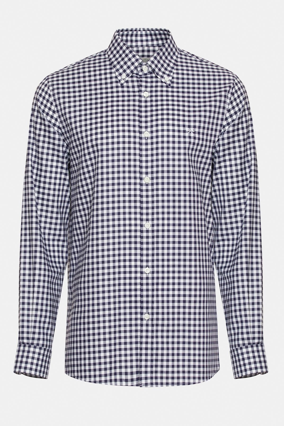 Erkek Siyah Cooper Fit Düğmeli Yaka Pötikareli Spor Gömlek