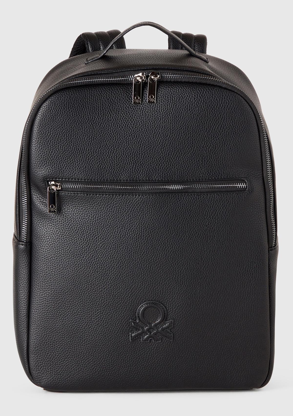 Erkek Siyah Eskitme Efektli Önü Logo Yamalı Fermuarlı Sırt Çantası