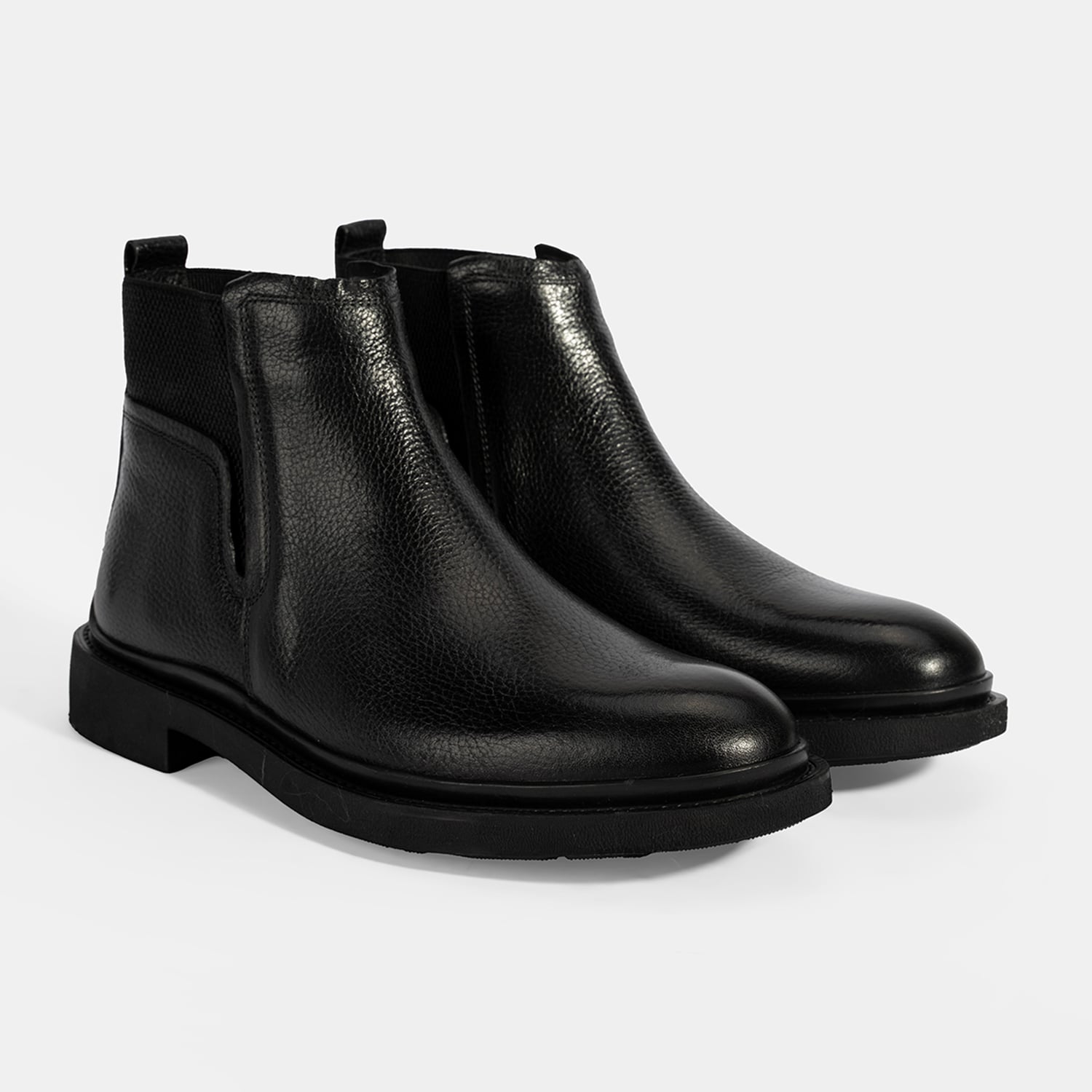 Erkek Siyah Lastik Detaylı Deri Bot