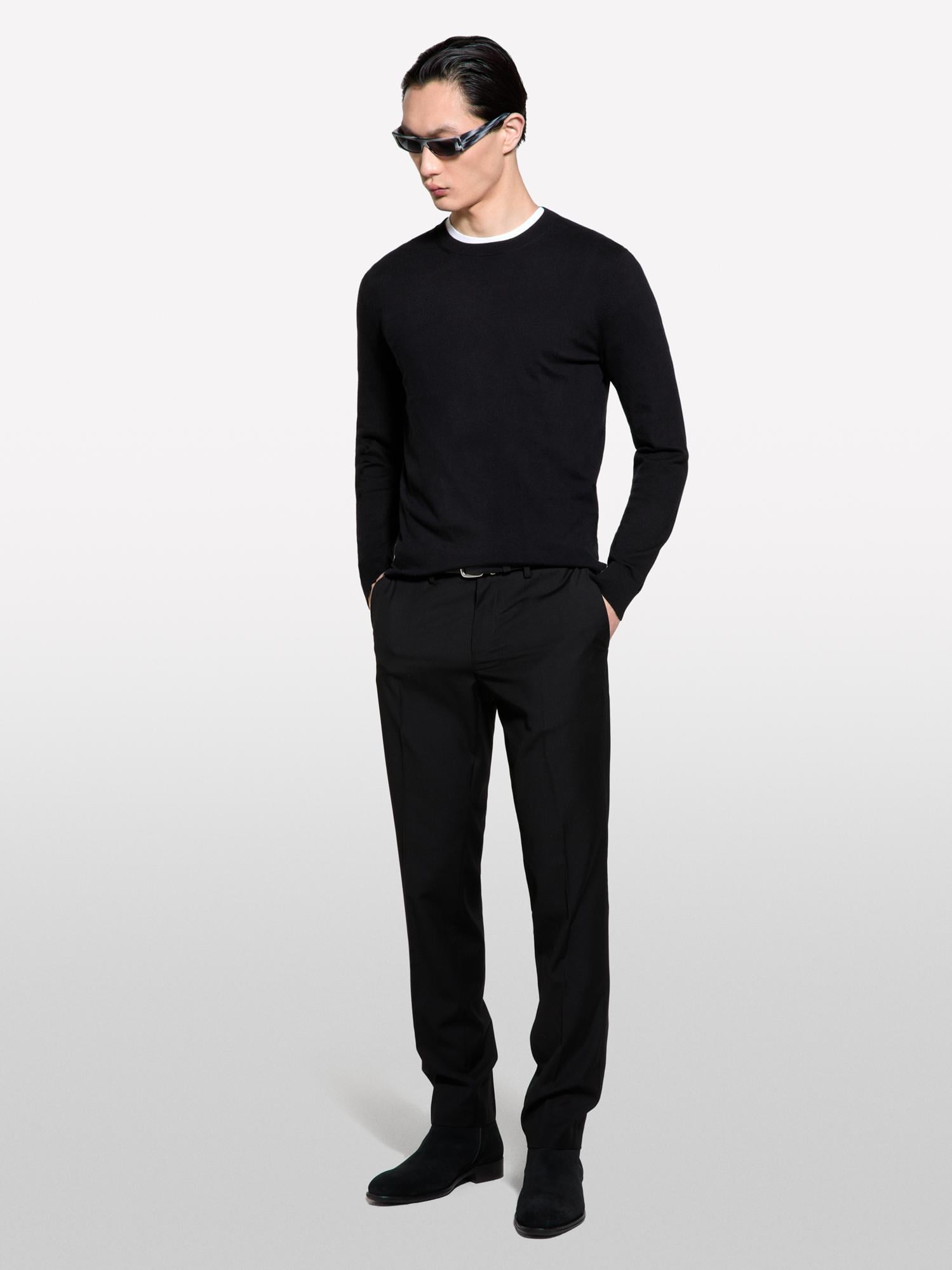 Erkek Siyah Pamuk Karışımlı Normal Kesim Uzun Kollu Ribanalı Kazak
