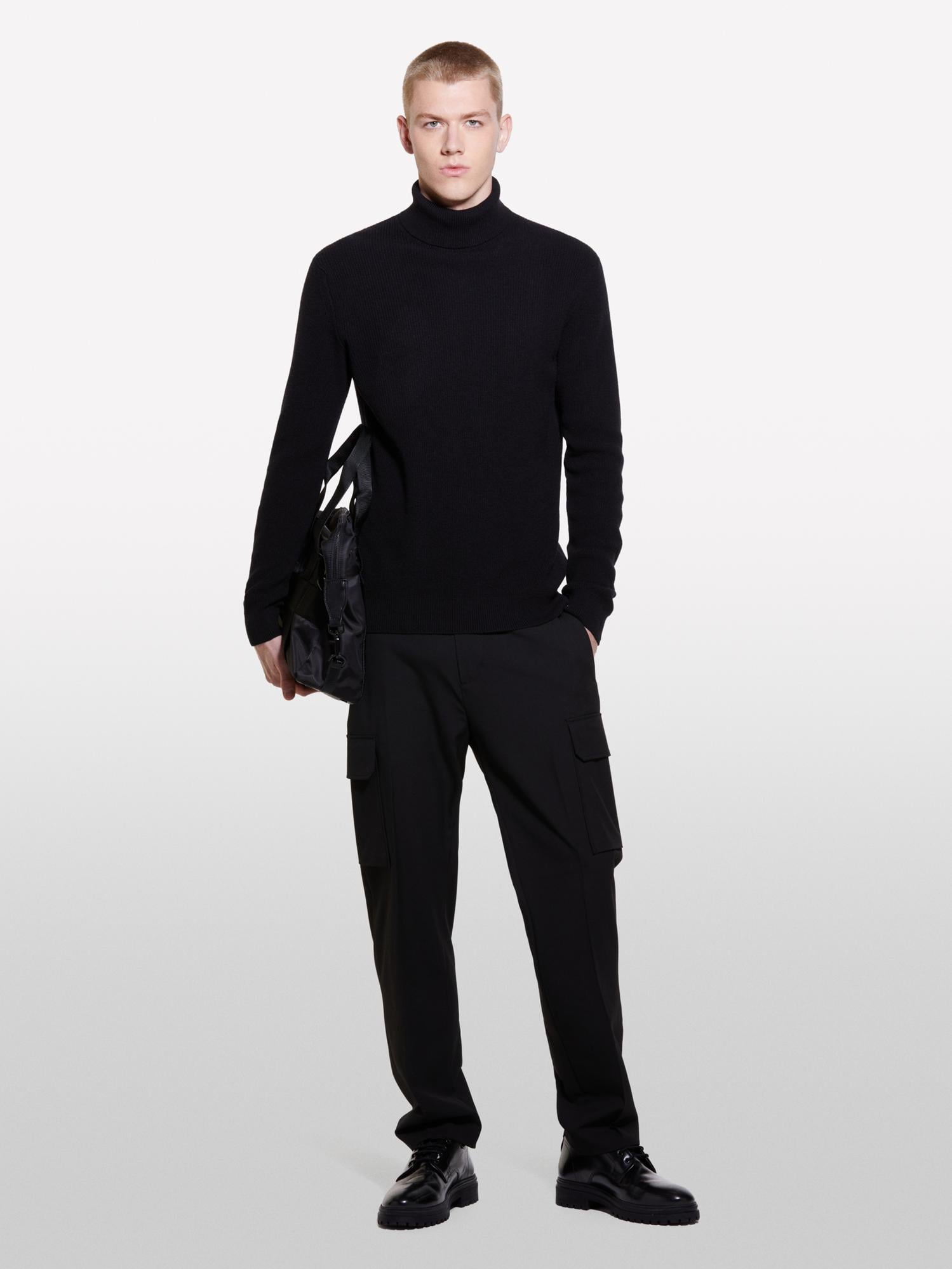 Erkek Siyah Yün Karışımlı Dik Yaka Kazak