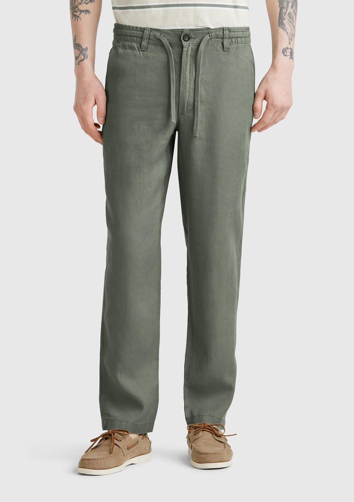 Erkek Soluk Yeşil %100 Keten Beli İpli Pantolon