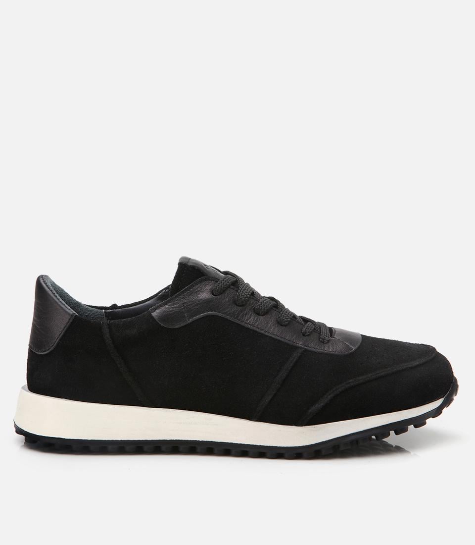 Erkek Süet Deri Siyah Ultra Hafif Tabanlı Spor Ayakkabı