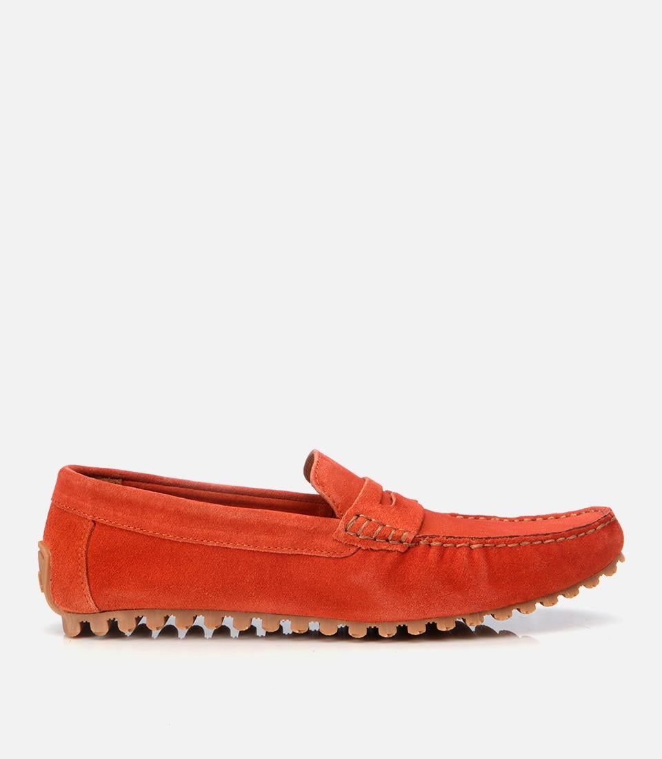 Erkek Süet Deri Turuncu Esnek Tabanlı Günlük Loafer