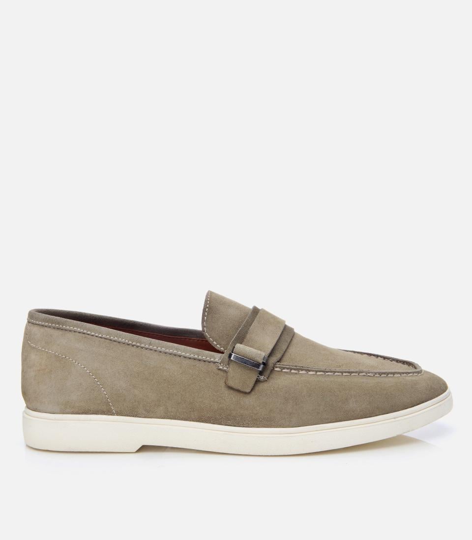 Erkek Süet Deri Yeşil Toka Detaylı Günlük Loafer