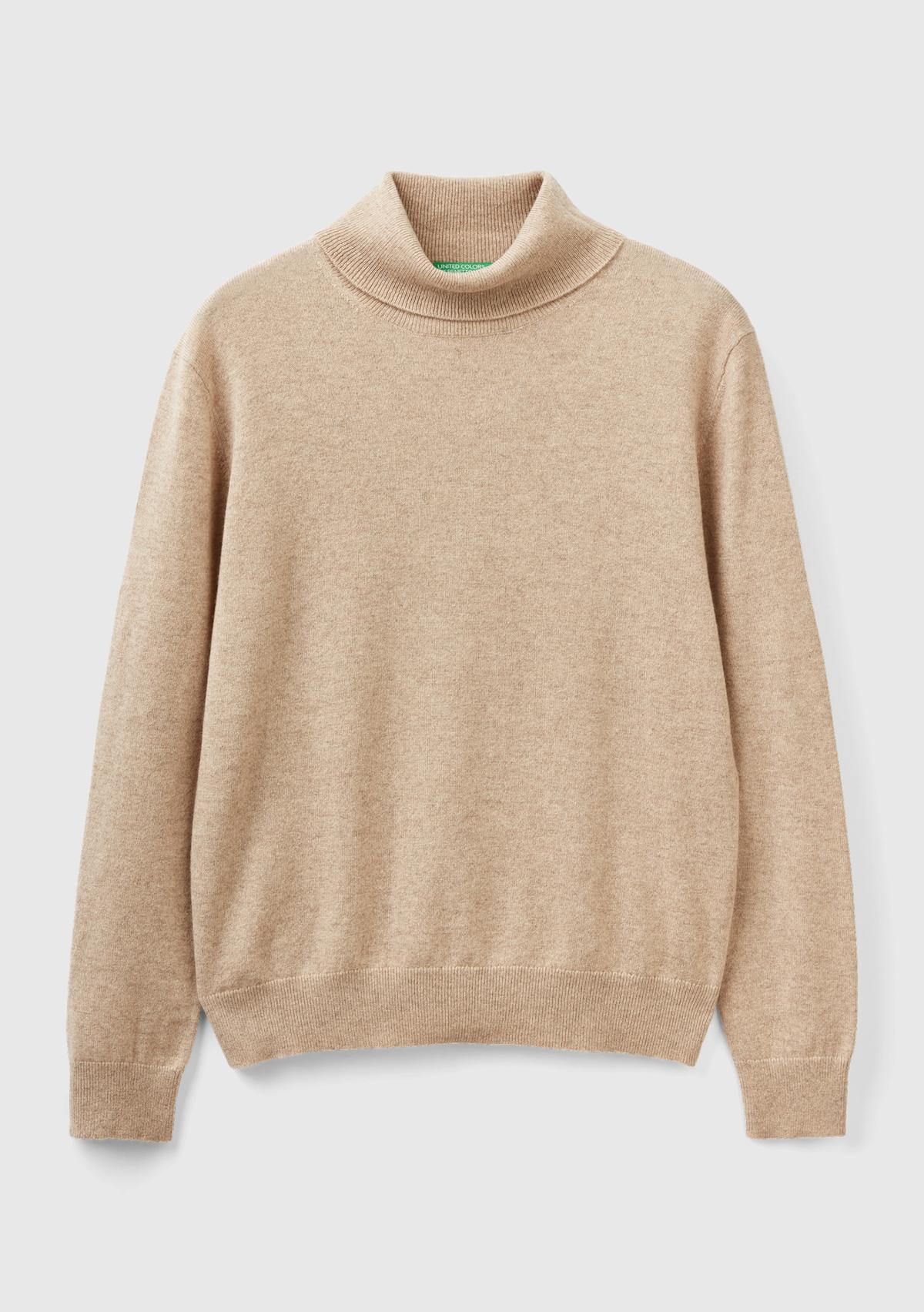 Erkek Sütlü Kahve Melanj %100 Kaşmir Dik Yaka Kazak. Keçi Yünü İçerir