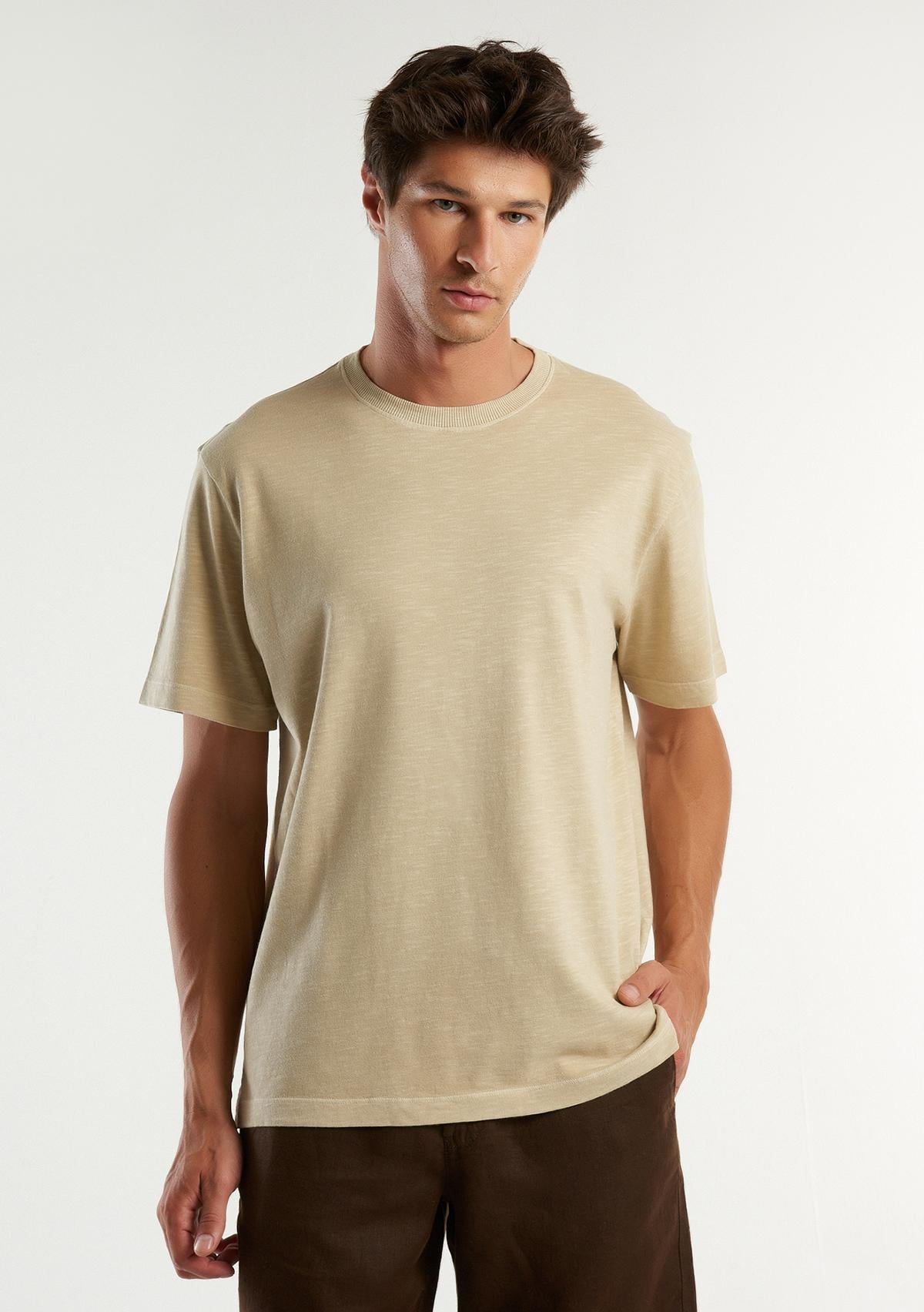Erkek Taş %100 Pamuk Tek Renkli Rahat Kesim Bisiklet Yaka T-Shirt