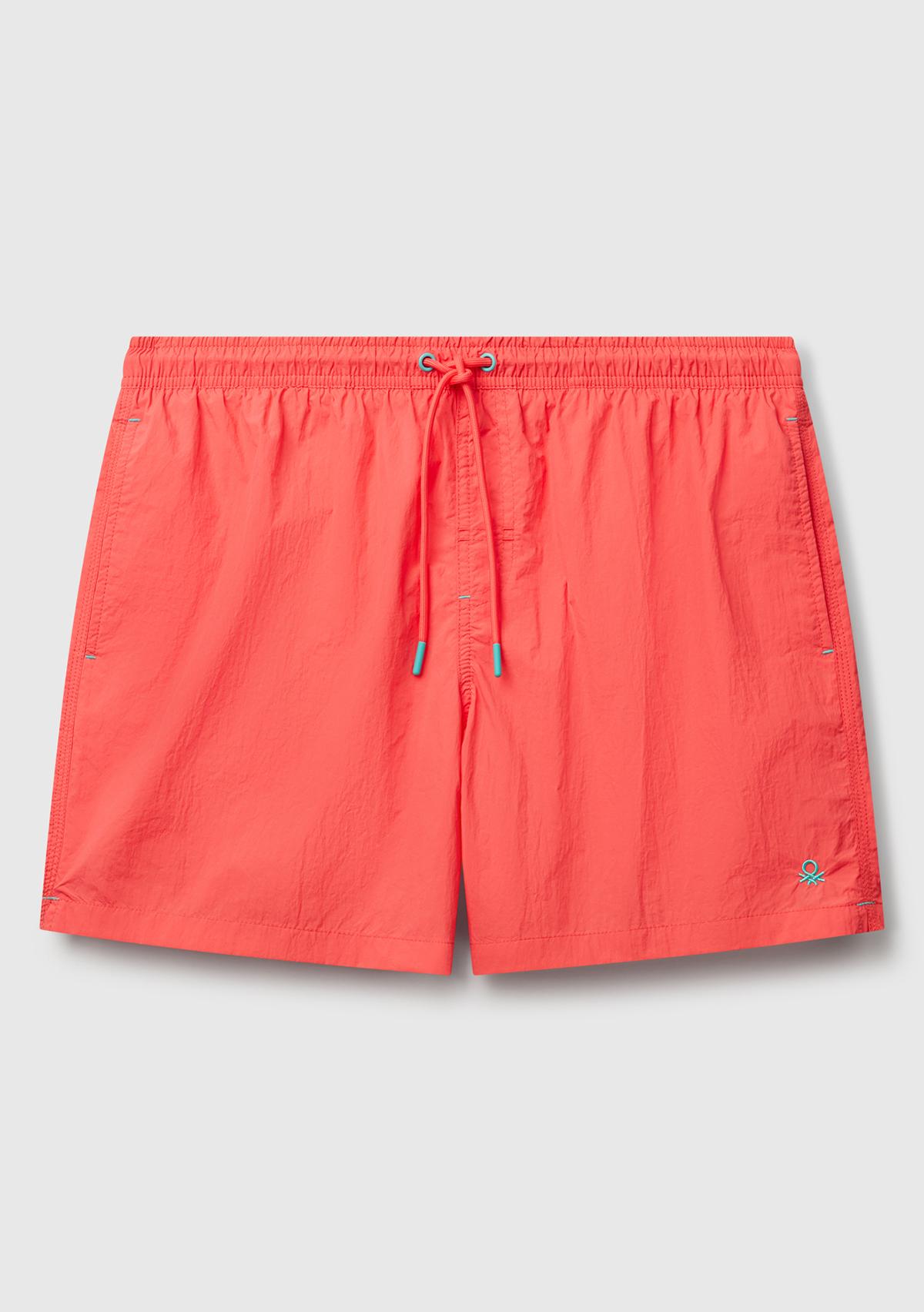Erkek Turuncu Arkası Cep Detaylı Büzgü İpli Deniz Şortu