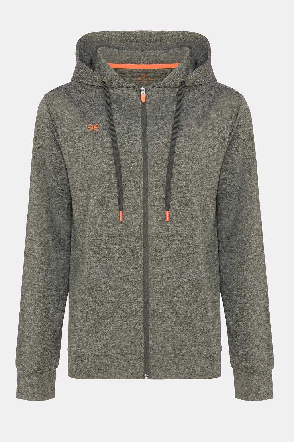 Erkek Yeşil Activewear Kapüşonlu Tam Fermuarlı Sweatshirt