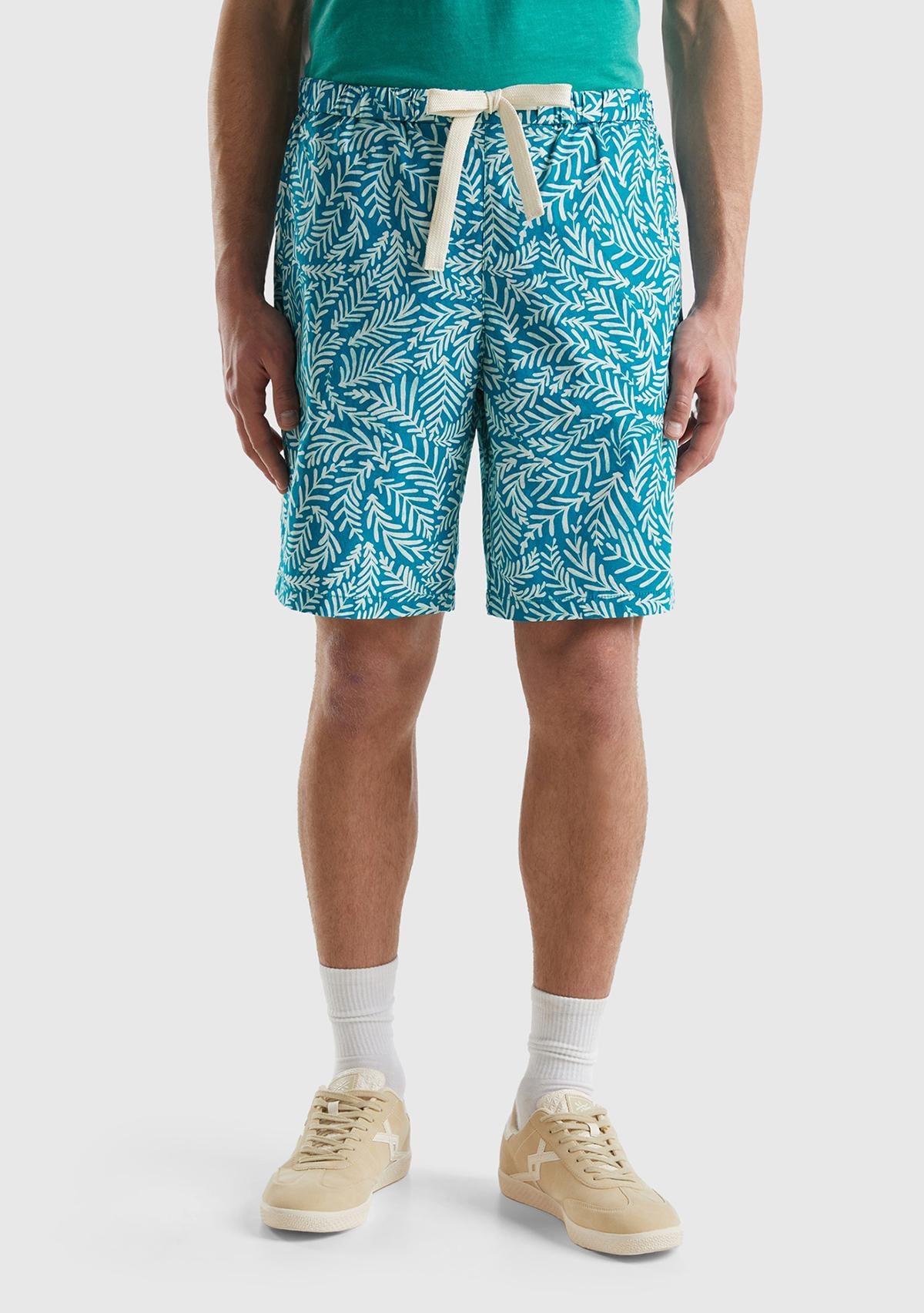 Erkek Yeşil Mix Streç Pamuklu Tamamı Desenli Yama Cepli Şort