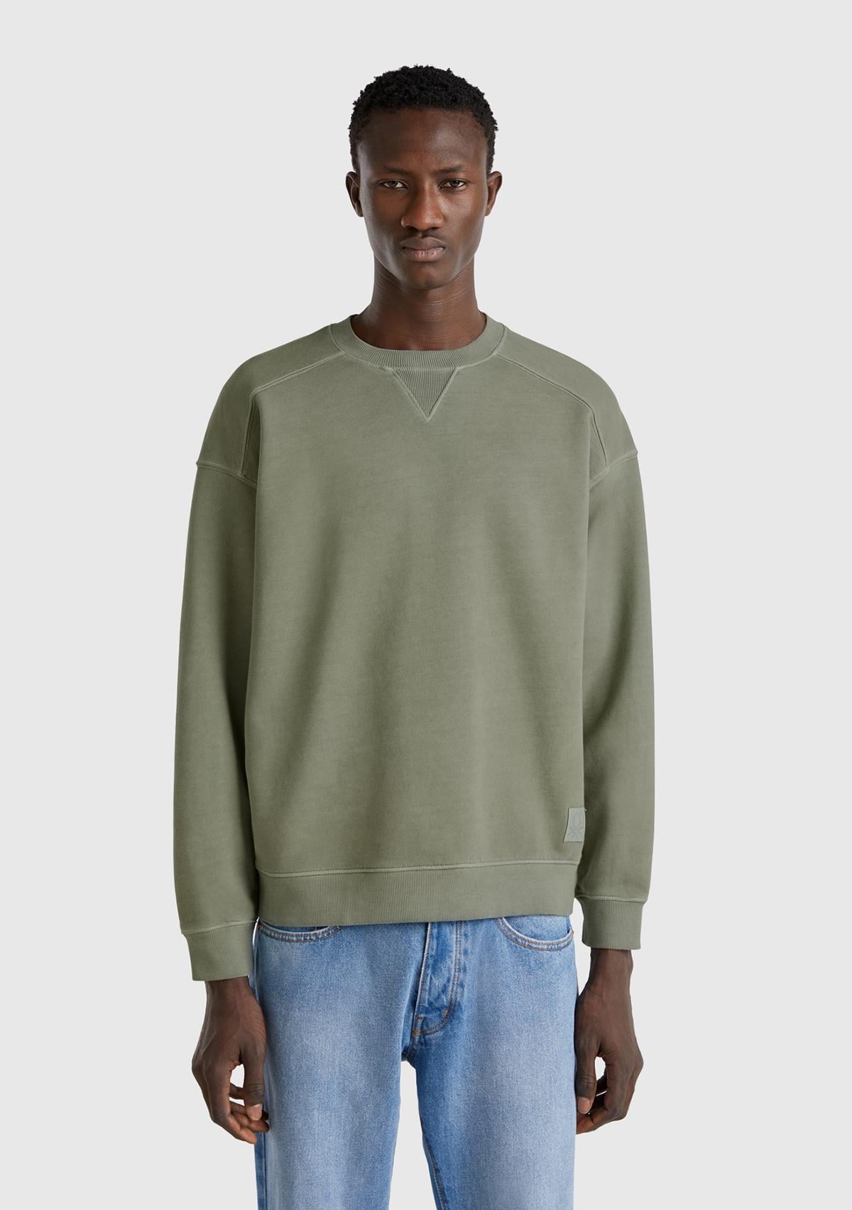 Erkek Yeşil Pamuklu Logo Etiketi Detaylı Bisiklet Yaka Sweatshirt