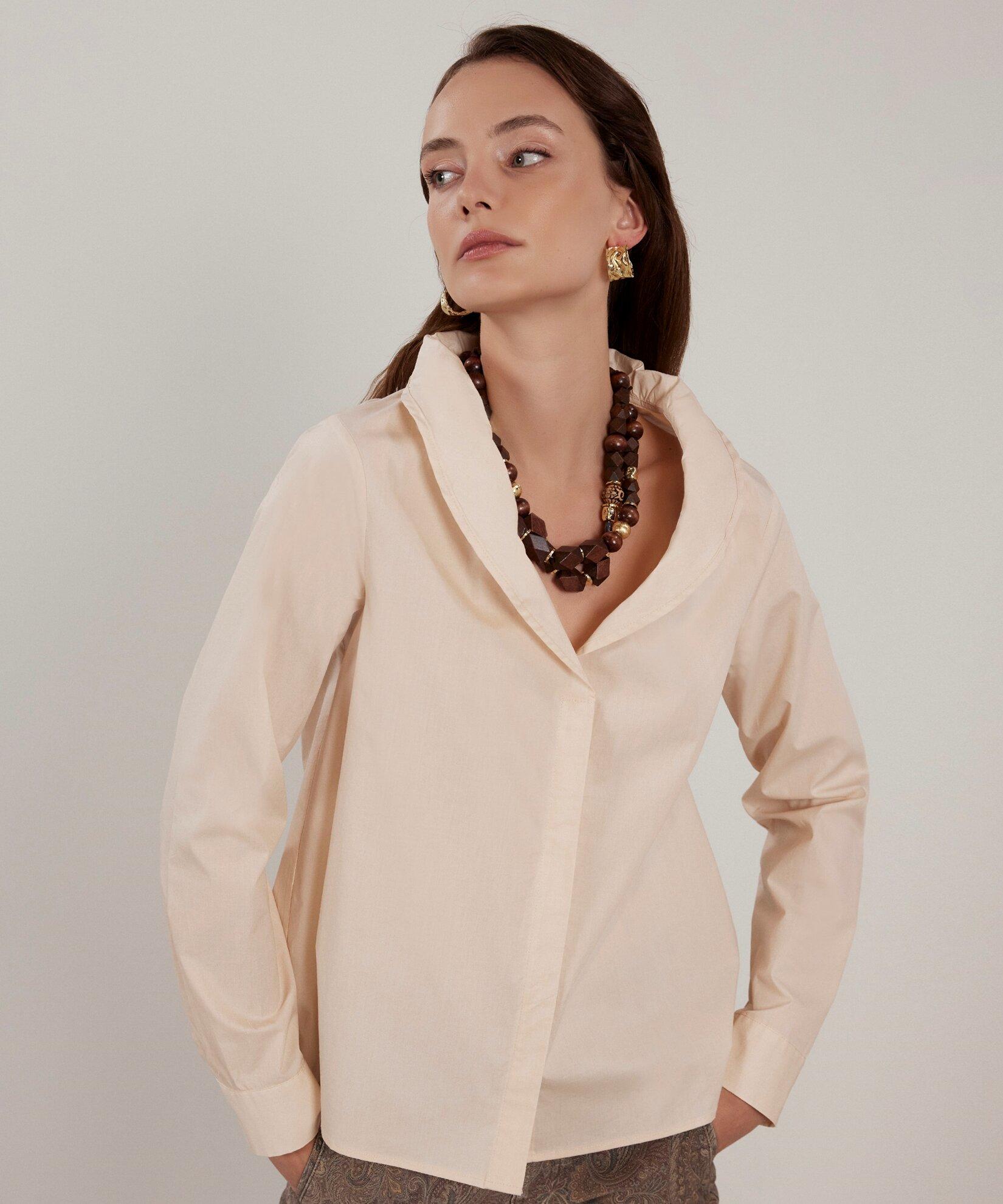 Pamuk gömleğin ikonik stili yakasının özgün tasarımında öne çıkıyor. Gömleği pirinç ve inci detaylı aksesuarlarla eşleştirerek klasik tarzınızı yansıtabilirsiniz.