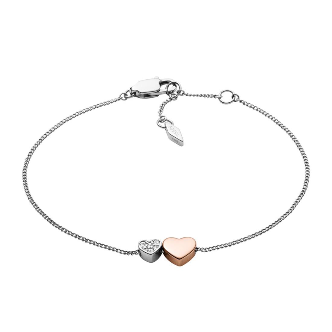 Metalik Gri|Rose Gold Renk / Çelik Materyal / Taşlı / Kalp Takı Şekli / Bileklik