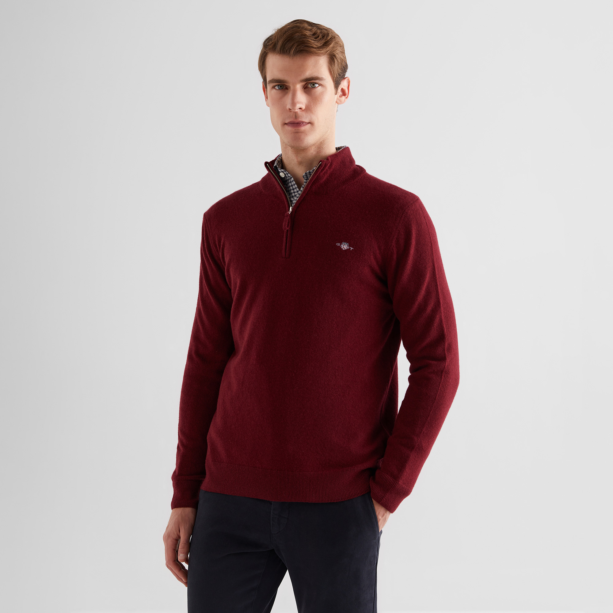 GANT Erkek Bordo Regular Fit Yarım Fermuarlı Yün Kazak
