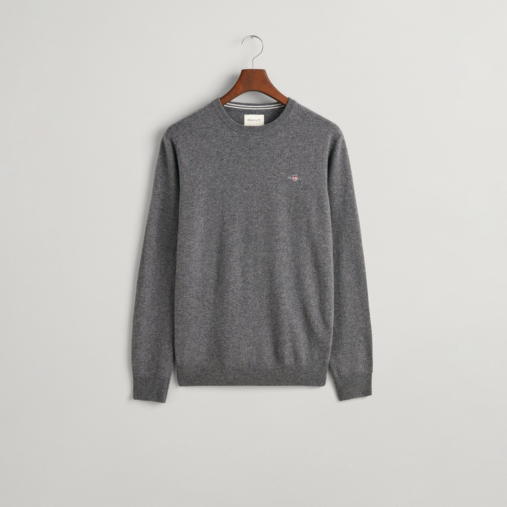 GANT Erkek Gri Regular Fit Bisiklet Yaka Yün Kazak