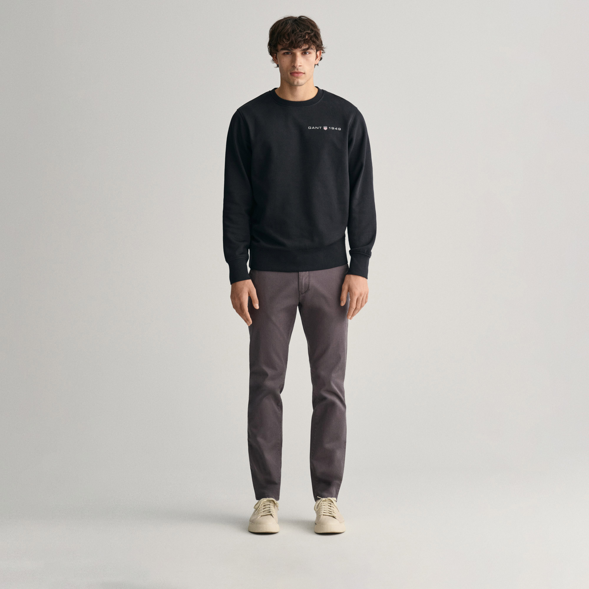 Organik pamuk tivil ve bir miktar esneklik içeren bu chino pantolon, slim fit bir kesime sahiptir. Arka cebinde düğmeli detaylar ve sağ arka cebinde bir GANT logosu bulunan bu pantolonları, rahat bir t-shirtten daha şık bir düğmeli gömleğe kadar her şeyle kombinleyebilirsiniz.