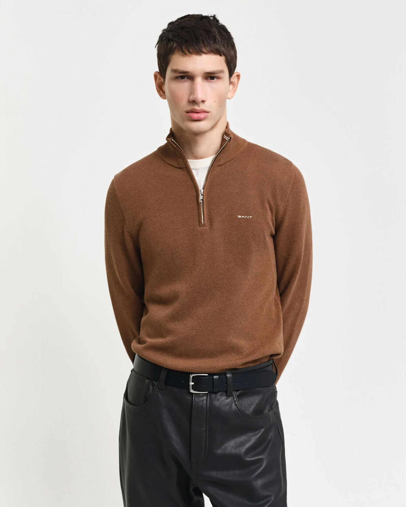 GANT kazak, regular fit kesimi ve yarım fermuarlı tasarımıyla konforlu ve şık bir görünüm sunar. Dokulu örgüsü ve iç yaka kısmındaki kontrast şerit detayı ile dikkat çeker. Etek ucu ile manşetlerindeki ribana detayları sayesinde konforlu bir uyum sağlar. Göğsünde yer alan GANT nakış detayı, özel tasarımı öne çıkarır ve stilinize şık bir hava katar.