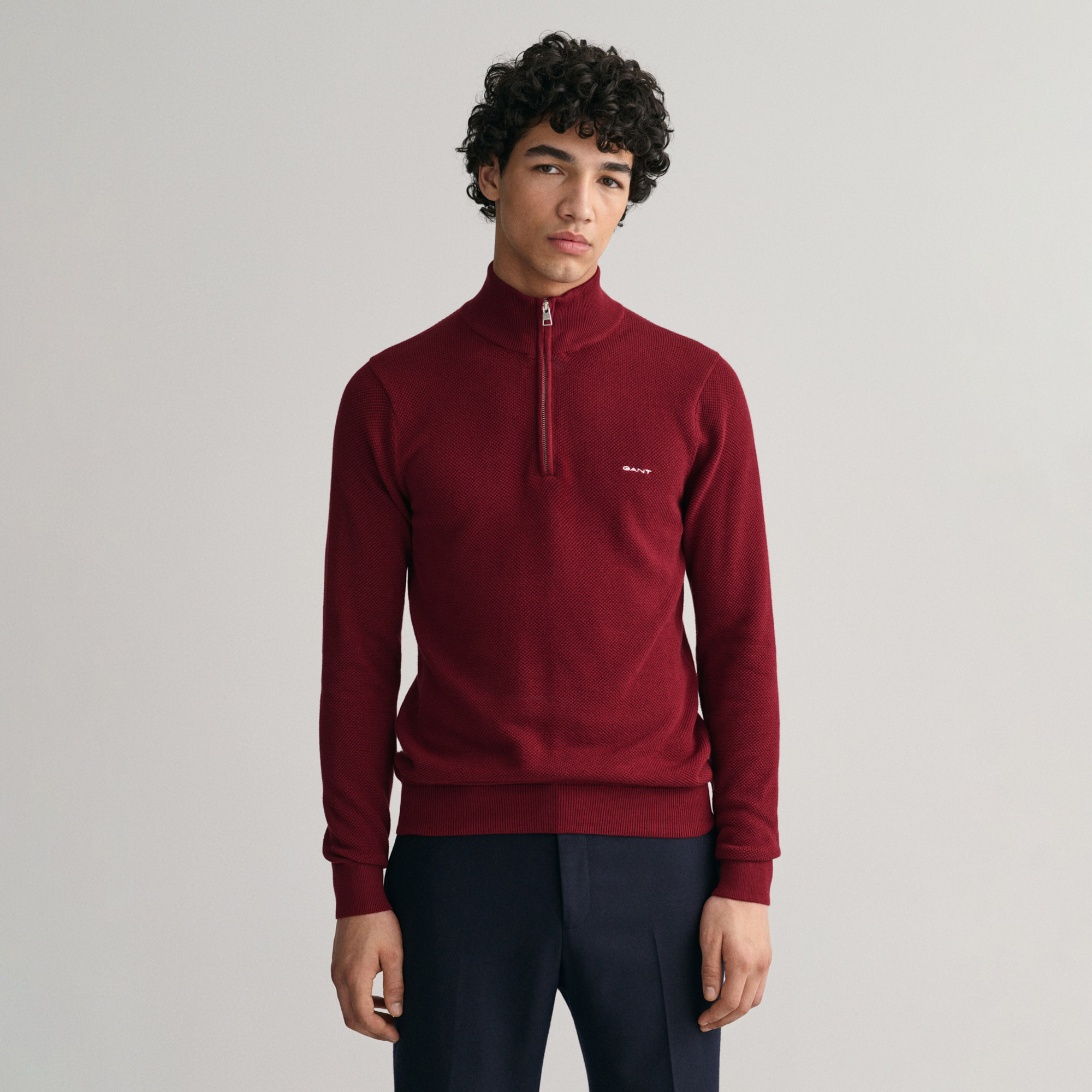 GANT kazak, regular fit kesimi ve yarım fermuarlı tasarımıyla konforlu ve şık bir görünüm sunar. Dokulu örgüsü ve iç yaka kısmındaki kontrast şerit detayı ile dikkat çeker. Etek ucu ile manşetlerindeki ribana detayları sayesinde konforlu bir uyum sağlar. Göğsünde yer alan GANT nakış detayı, özel tasarımı öne çıkarır ve stilinize şık bir hava katar.
