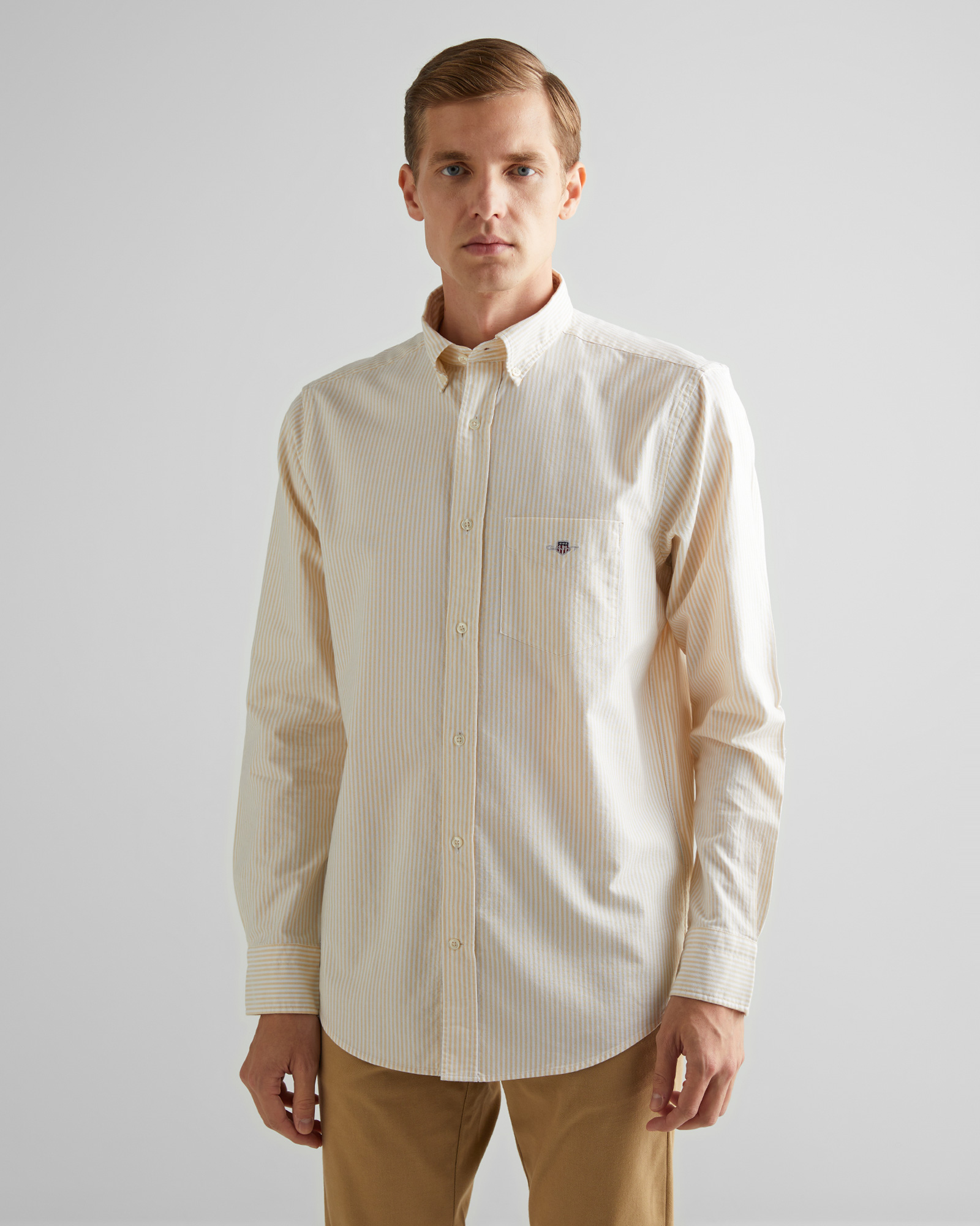 GANT Erkek Krem Regular Fit Düğmeli Yaka Çizgili Oxford Gömlek