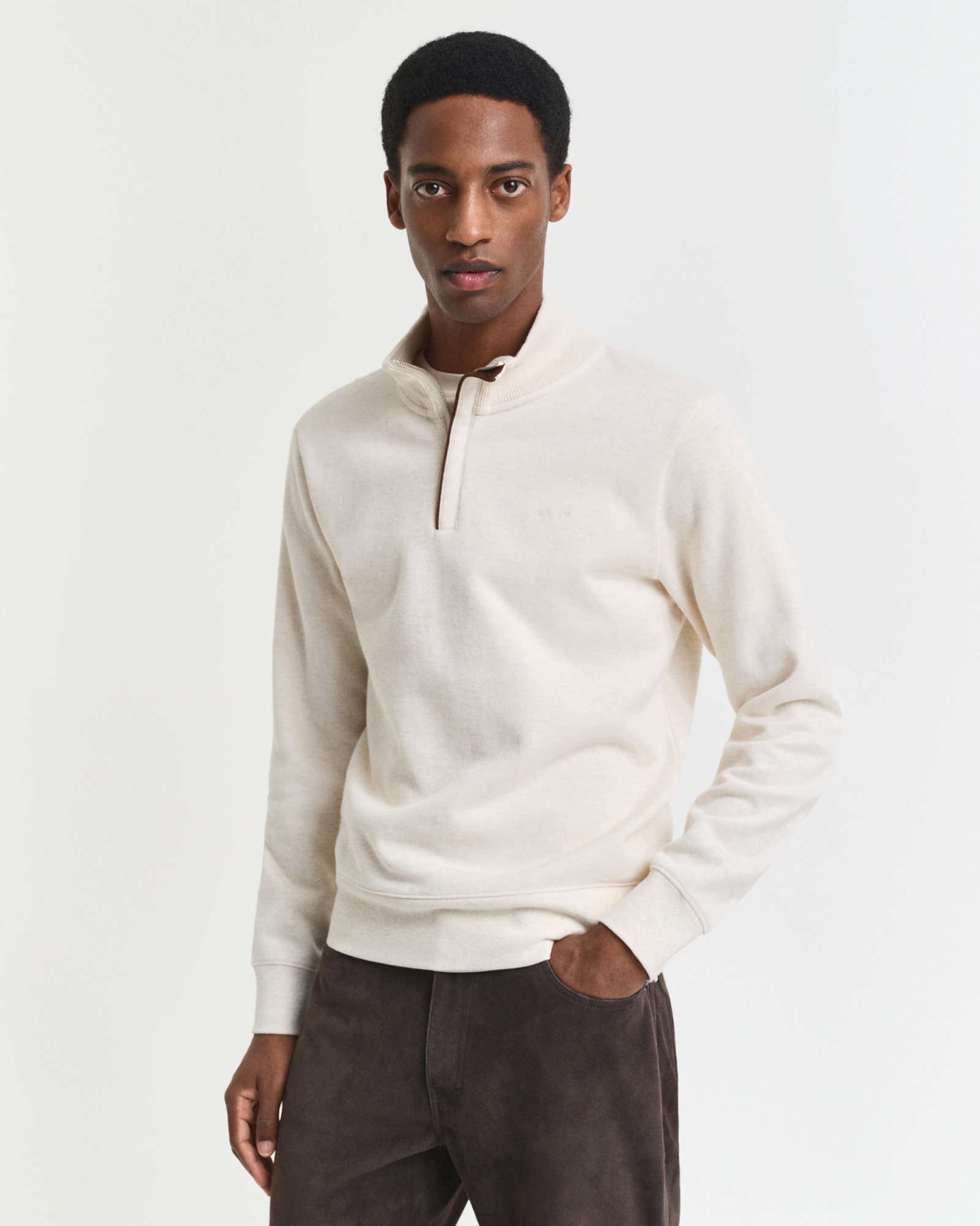 GANT Erkek Krem Regular Fit Yarım Fermuarlı Sweatshirt