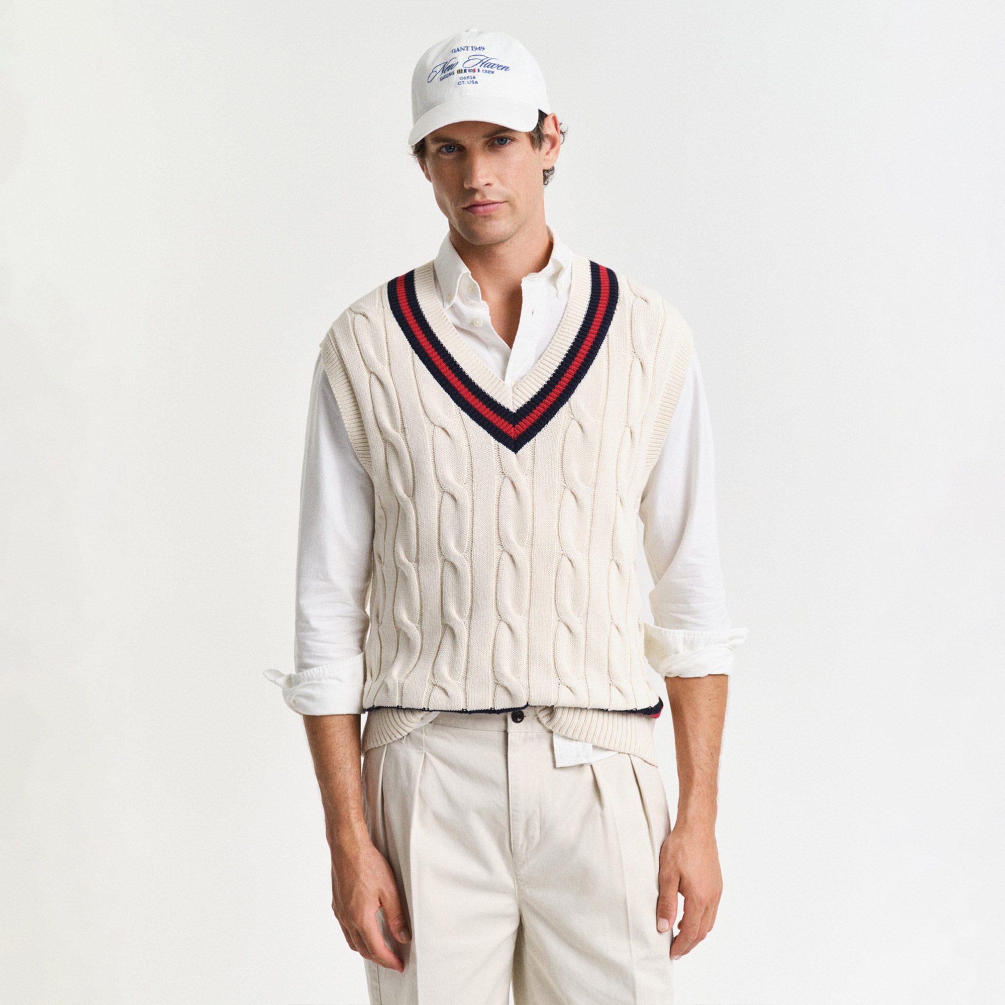 İtalyan pamuk karışımlı kumaştan üretilen bu GANT örgü yelek, tamamını saran örgü deseniyle klasik ve şık bir stil sunuyor. Relaxed fit kesimi sayesinde rahat bir oturuş sağlarken V yaka ve etek ucundaki kontrast şerit detaylarıyla preppy tarzına modern bir dokunuş katıyor. Yaka, etek ucu ve kol oyuklarındaki ribana bitişler ise ekstra konfor ve şıklık sunuyor. Hem gömleklerle hem de basic t-shirtlerle zahmetsizce kombinlenebilen bu süveter, zamansız stil arayanlar için mükemmel bir seçim. Daha dar bir görünüm için bir beden küçük tercih edin.
