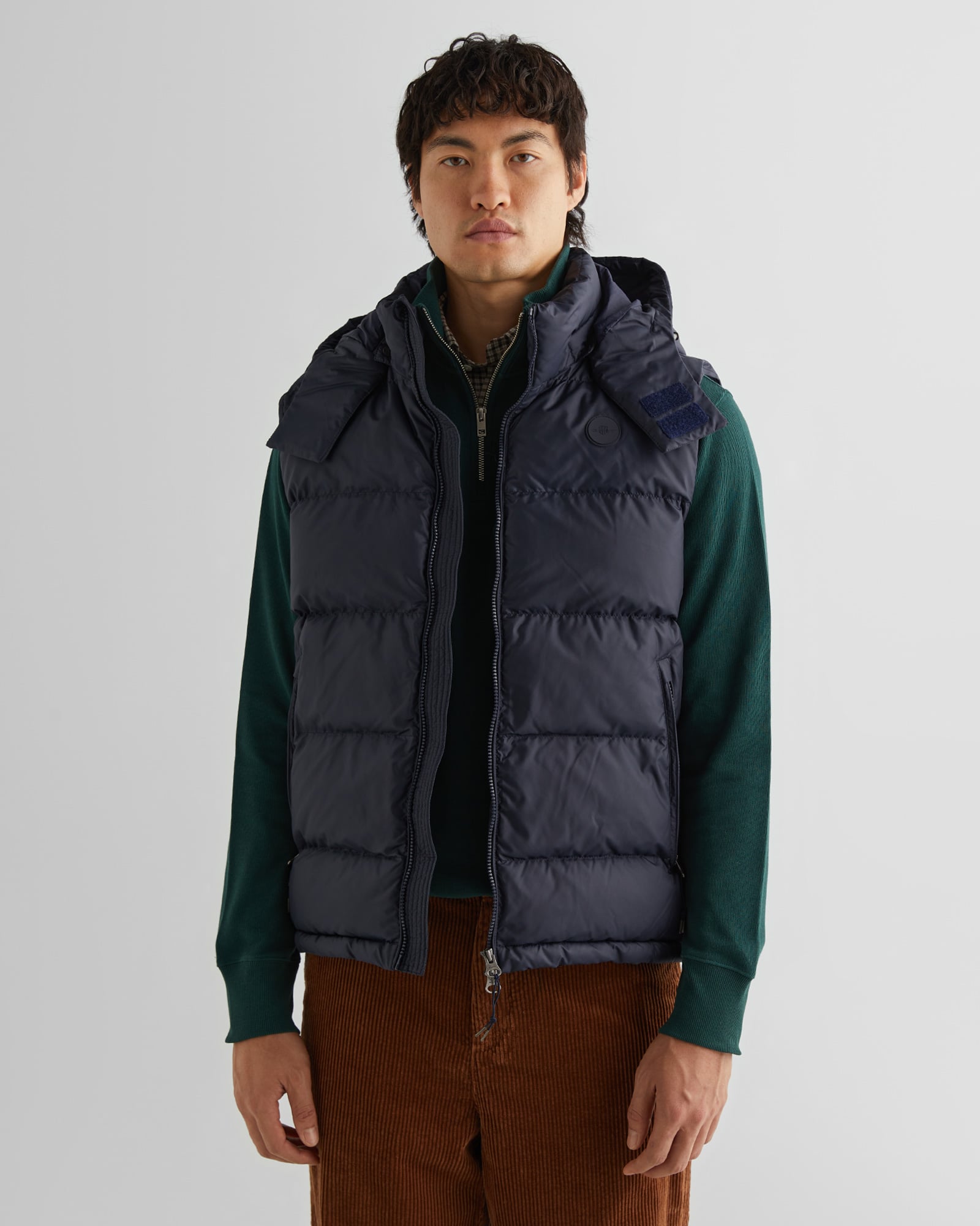 Regular fit kesimi ve su itici kaplama yüzeyi ile GANT yelek, sonbahar ve kış günlerinin vazgeçilmezidir. Tam astarlı iç yapısı, çıkarılabilir kapüşon ve fermuarlı yan cepler ile tasarlanmıştır. Ayrıca, ön yüzü fermuarlı ve göğsünde GANT logosu bulunmaktadır. Yüzeyi, suyu itmeye yardımcı olacak dayanıklı su itici (DWR) özelliğine sahiptir. Herhangi bir bakım uygulamadan önce ürünün bakım talimatlarını dikkatle takip ediniz