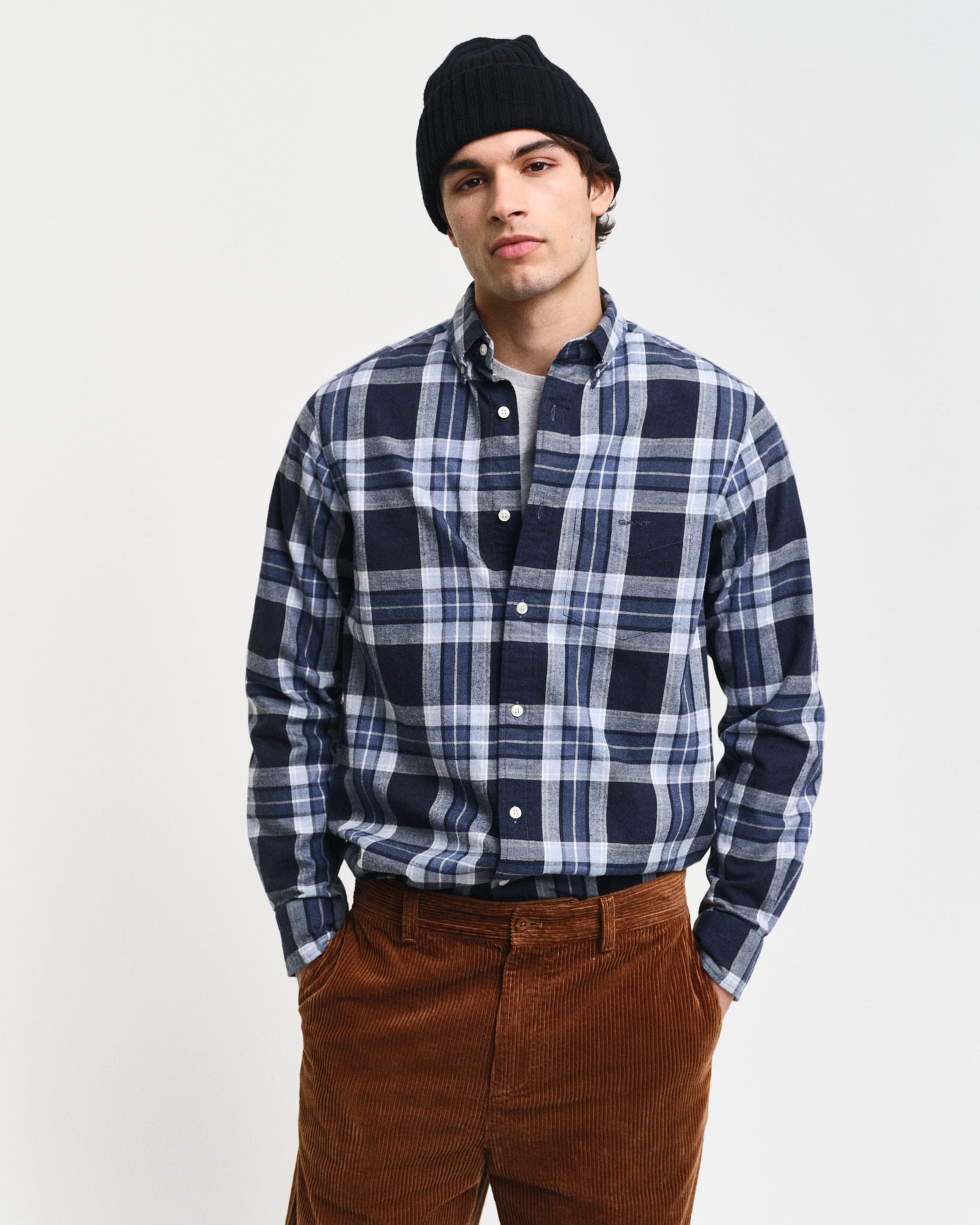 Sonbahar ve kış sezonunun renkleri ile özdeşleşen gömlek, hafif flanel kumaştan yapılmış ve kare desen ile süslenmiştir. Regular fit kesimde tasarlanmış olup, düğmeli yaka, göğüs cebi, ayarlanabilir manşetler gibi klasik detaylara sahiptir.