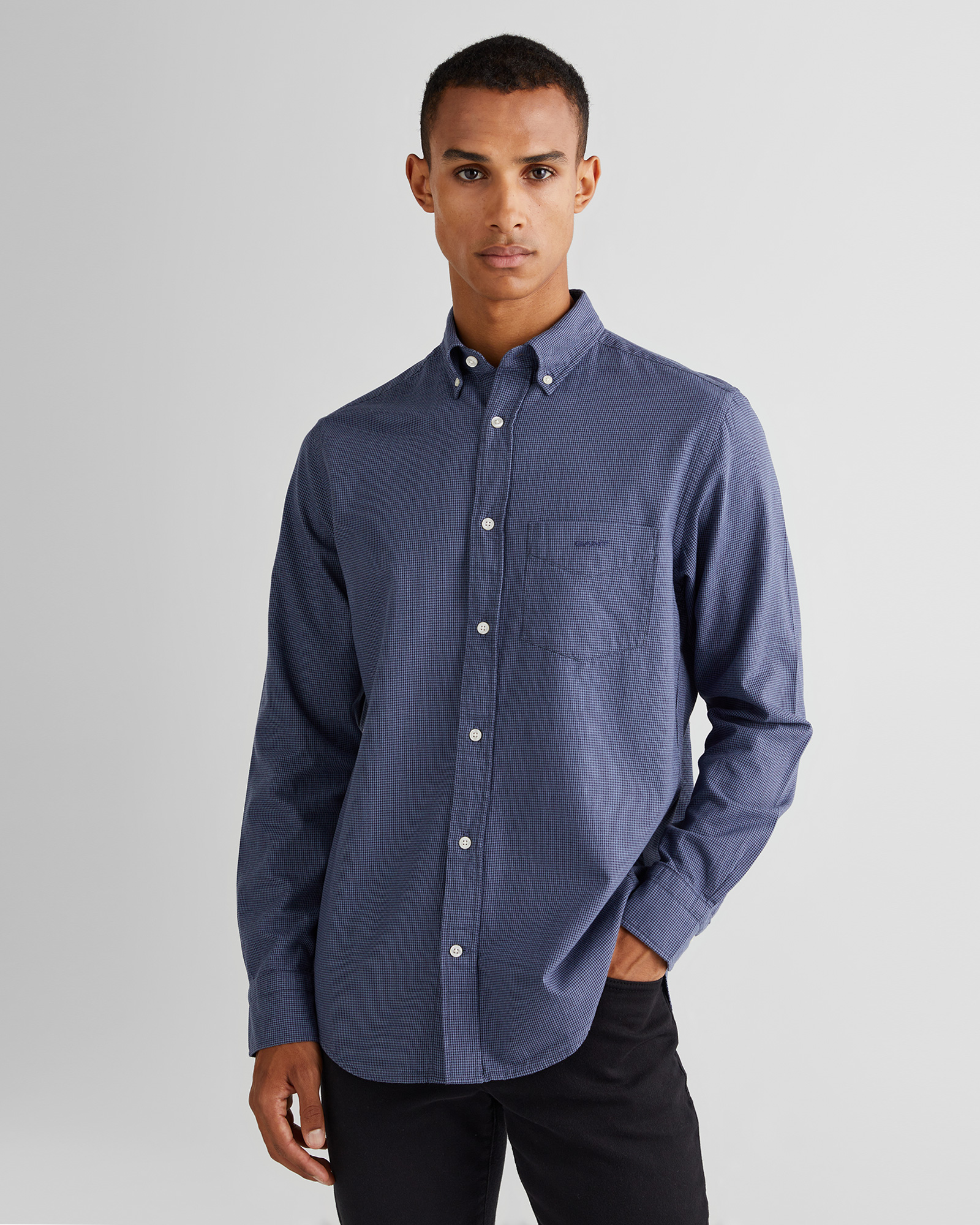 GANT Erkek Lacivert Regular Fit Düğmeli Yaka Kareli Gömlek