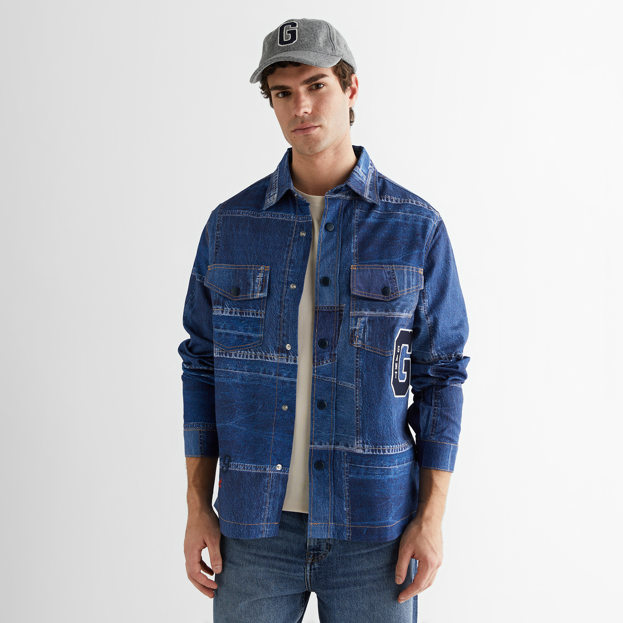 Retro esintiler ve modern dokunuşlarla tasarlanan bu oversize fit denim gömlek, özgün tarzıyla dikkat çekiyor. Yıpratılmış efektli denim kumaşı sayesinde vintage bir hava sunarken geniş kesimi gün boyu konfor ve hareket özgürlüğü sağlıyor. Düğmeli kapanışı klasik bir duruş katarken ön kısımdaki kapaklı cepler fonksiyonel bir detay sunuyor. Göğüs üzerindeki büyük "G" logosu ise kolej stiline gönderme yaparak dinamik bir görünüm kazandırıyor. Günlük ve casual kombinlerde rahatlıkla kullanılabilen bu denim gömlek, stilinize cesur ve özgün bir dokunuş katacak. Bu gömleği basic bir t-shirt ve bol kesim jean pantolonla tamamlayarak cool ve rahat bir görünüm elde edebilirsiniz. Daha şık bir tarz için slim fit pantolon ve deri botlarla kombinleyerek güçlü bir stil yakalanabilir. Serin havalarda içine kapüşonlu sweatshirt ekleyerek trend bir görünüm oluşturabilirsiniz.