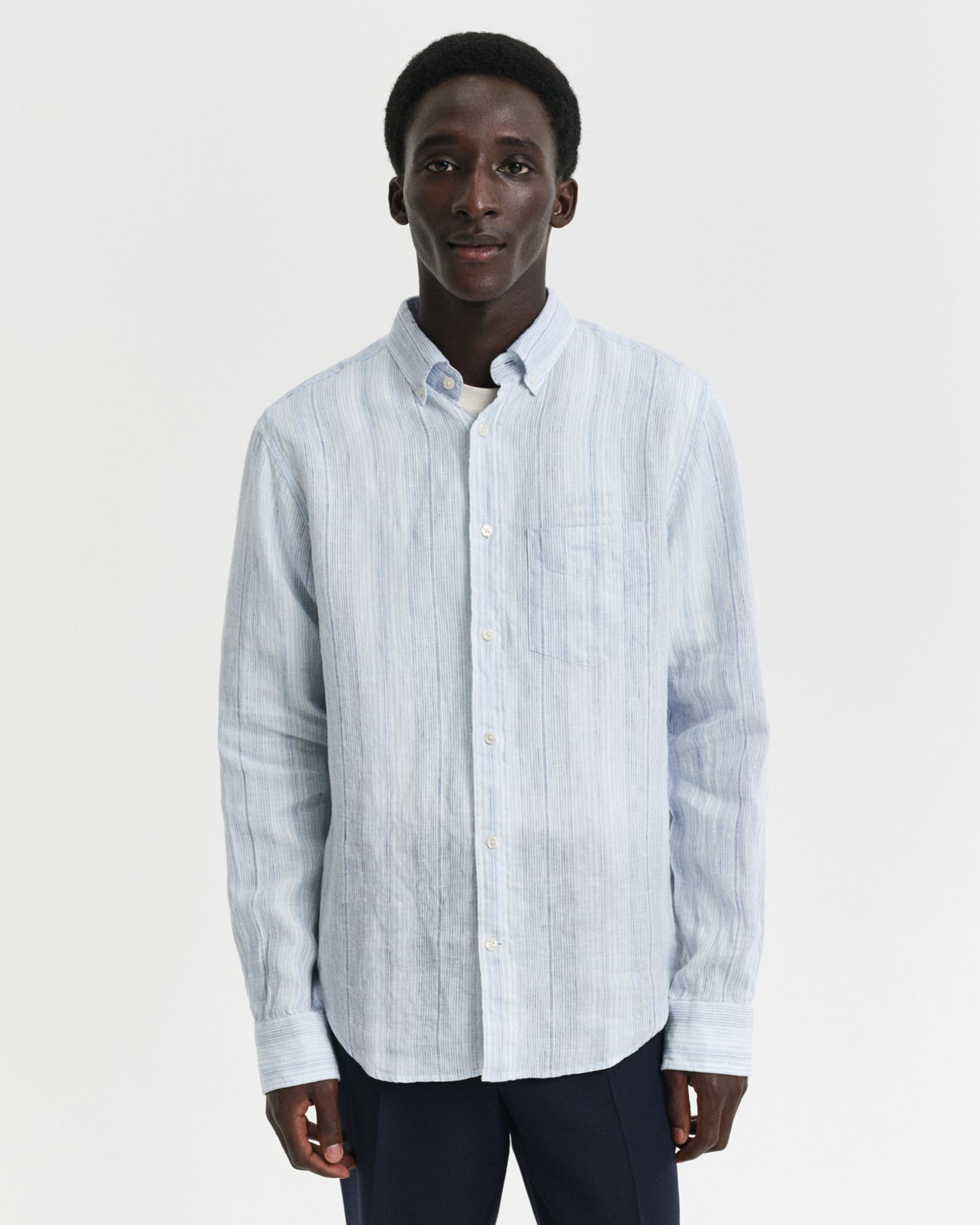 GANT Erkek Mavi Regular Fit Düğmeli Yaka Çizgili Gömlek