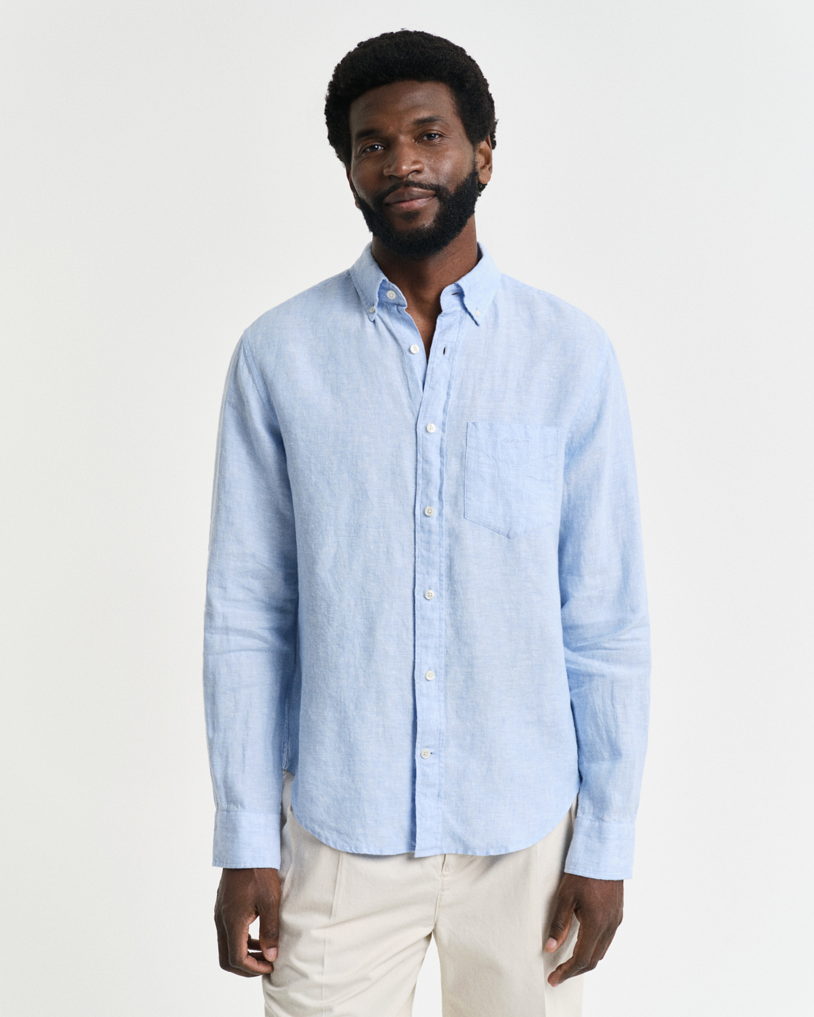 GANT Erkek Mavi Regular Fit Düğmeli Yaka Keten Gömlek