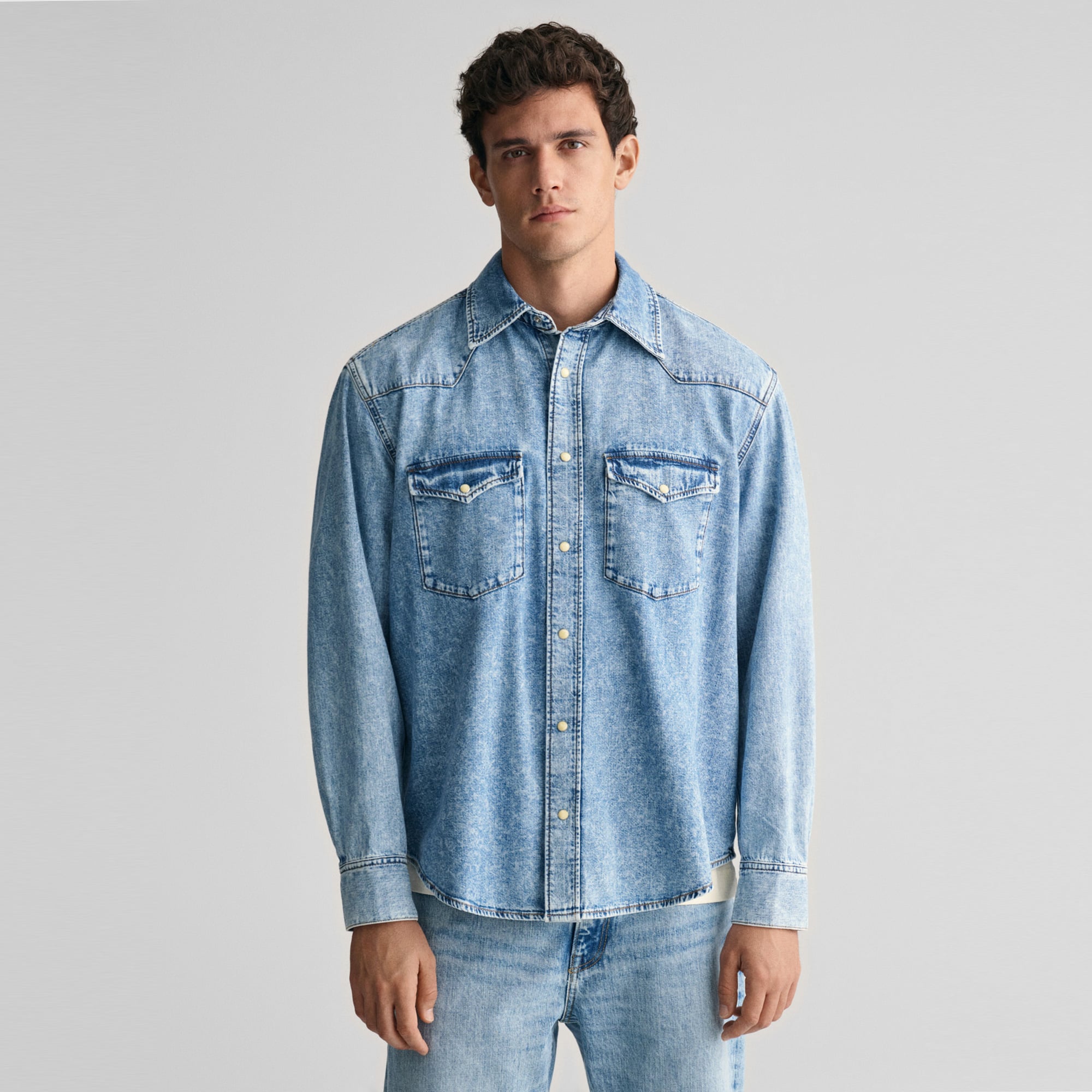 Şık ve zarif, batı esintili bu rodeo gömleği %100 pamuktan üretilmiştir ve relaxed fit bir kesime sahiptir. Ön ve arka kısımda şekillendirilmiş yaka ile tasarlanmış olan gömleğin detayları arasında bir uç yaka, çift göğüs cebi, ayarlanabilir manşetler ve çıtçıt düğmeler bulunmaktadır. Bu giysi relaxed fit olarak tasarlanmıştır. Daha dar bir görünüm için küçük beden tercih etmenizi öneririz.