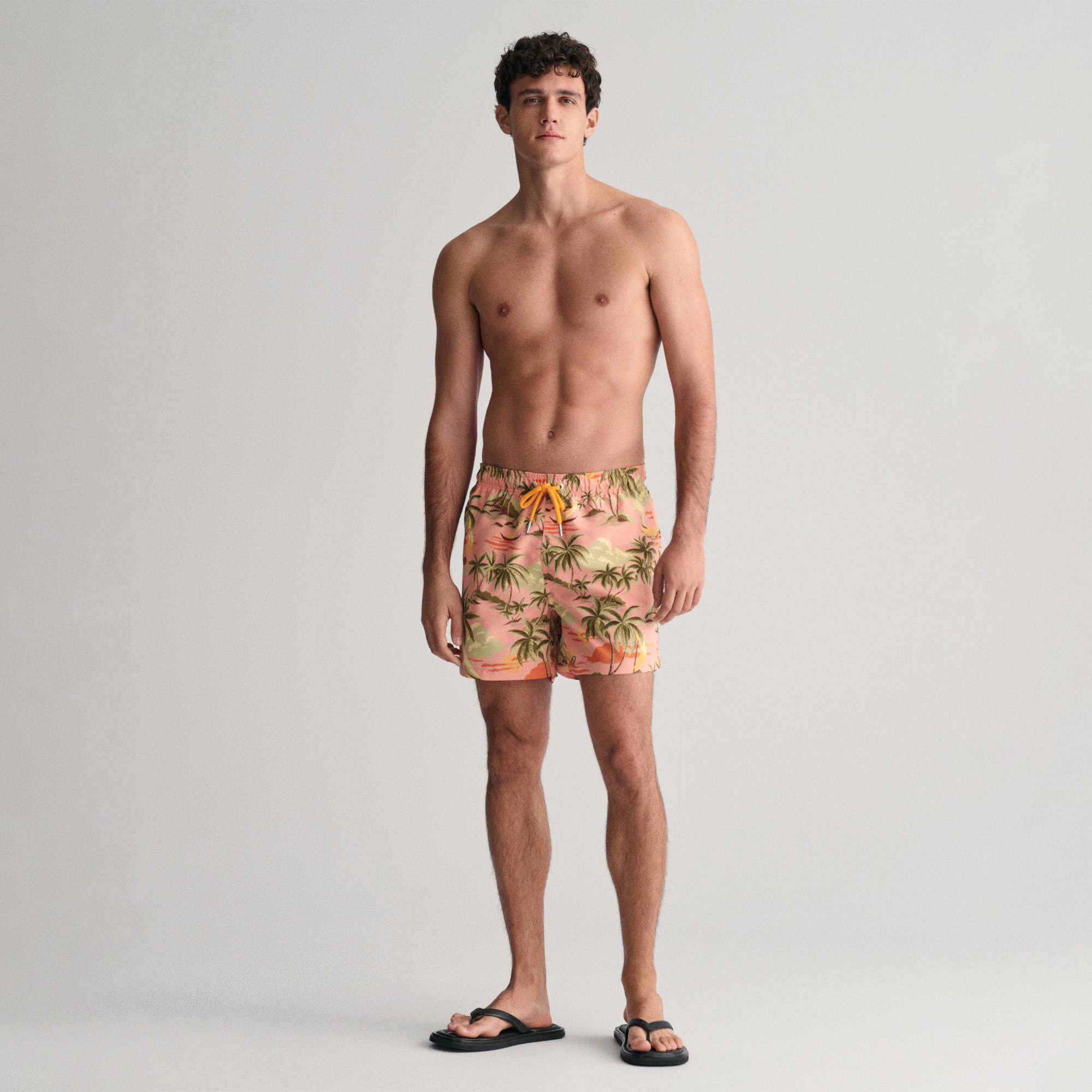 Klasik mayo şortlar, geri dönüştürülmüş polyesterden üretilmiş olup regular fit bir tasarıma sahiptir. Bacakta işlenmiş GANT logosu bulunan orta uzunluktaki tasarımı, konfor ve şıklık için lastikli bir bel bandı ve kontrast renkli bir bağcık ile detaylandırılmıştır. Tümüyle Hawaiian desenli olarak hazırlanmış olan mayo şort, kullanışlı yan dikiş cepleri ve tek arka cebi ile tamamlanmıştır.