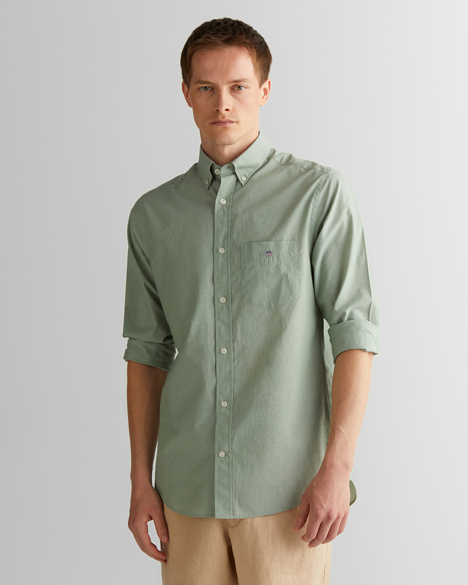 GANT Erkek Yeşil Regular Fit Düğmeli Yaka Poplin Gömlek