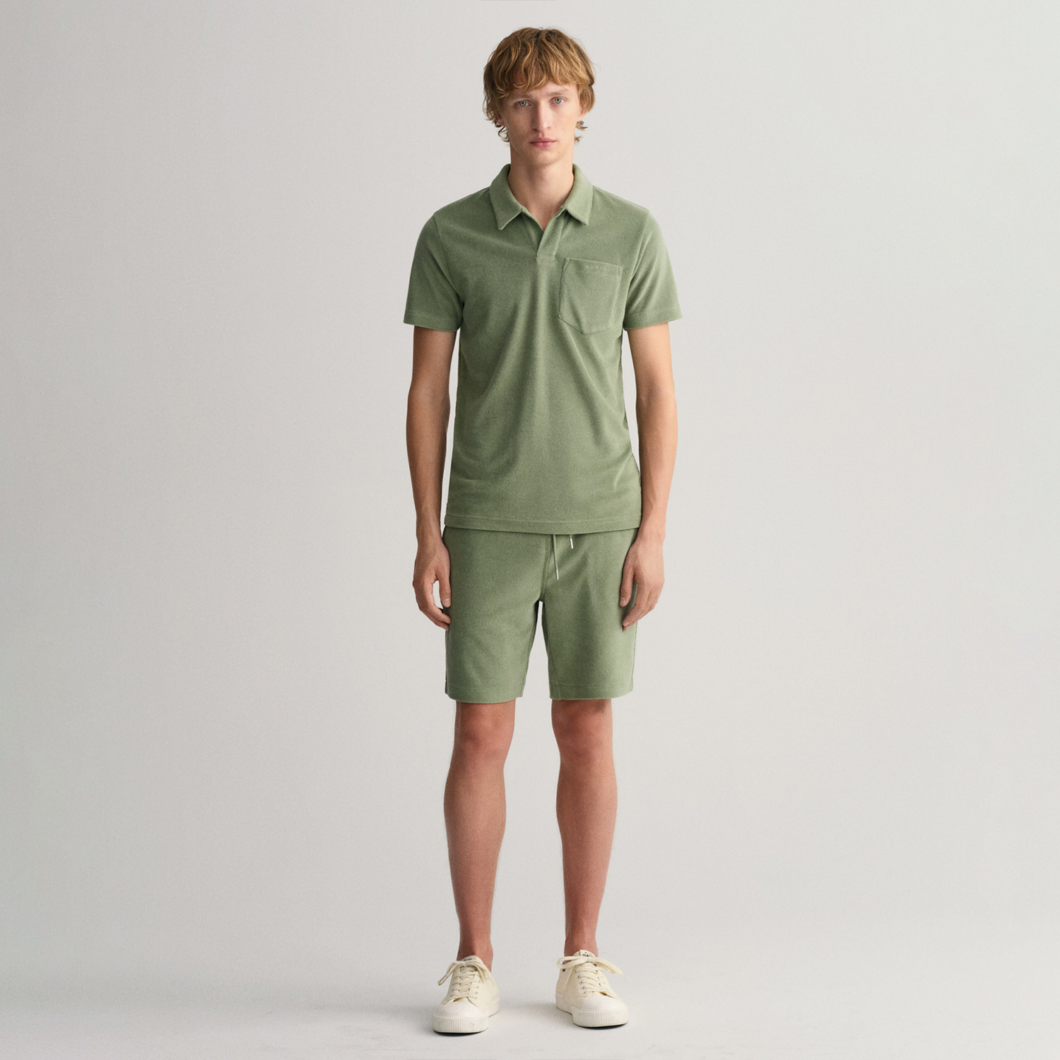 Yumuşak havlu kumaştan üretilen bu şort, stil ve konforu bir arada sunuyor. Kişiselleştirilmiş bir uyum için belde büzgü ipleriyle donatılmış olan bu şortu en sevdiğiniz tişörtle giyebilir veya benzer kumaş ve renkteki pike polo tişörtümüzle eşleştirebilirsiniz.