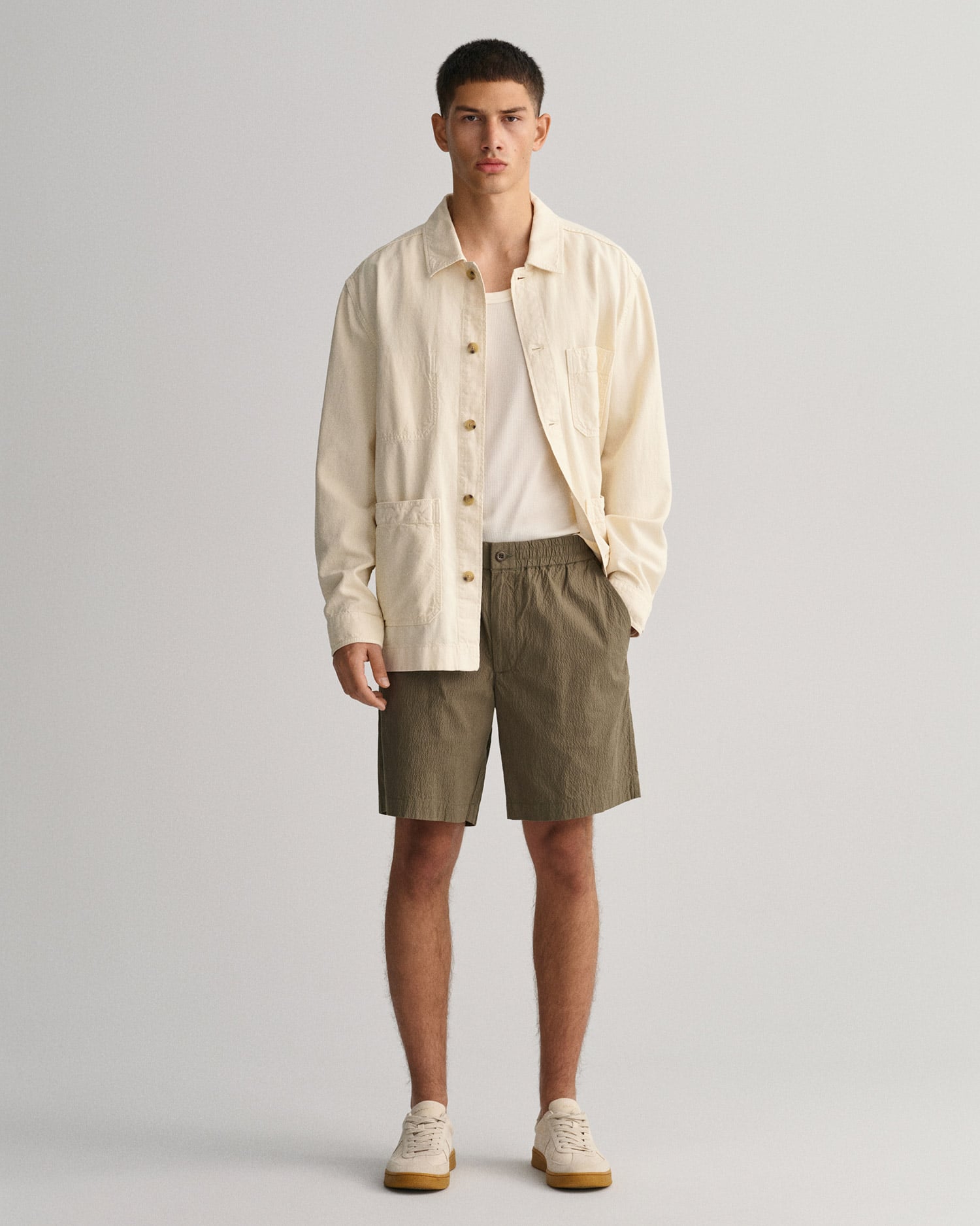 Yumuşak ve havadar gofre kumaştan üretilen bu şort, kesinlikle en sevilen favorilerinizden biri olacak. Normal kesimi, düz paçası ve diz üstü uzunluğuyla bu şort, bu sezon plaj ziyaretleri, piknikler ve hafta sonu gezileri için vazgeçilmez şortunuz.
