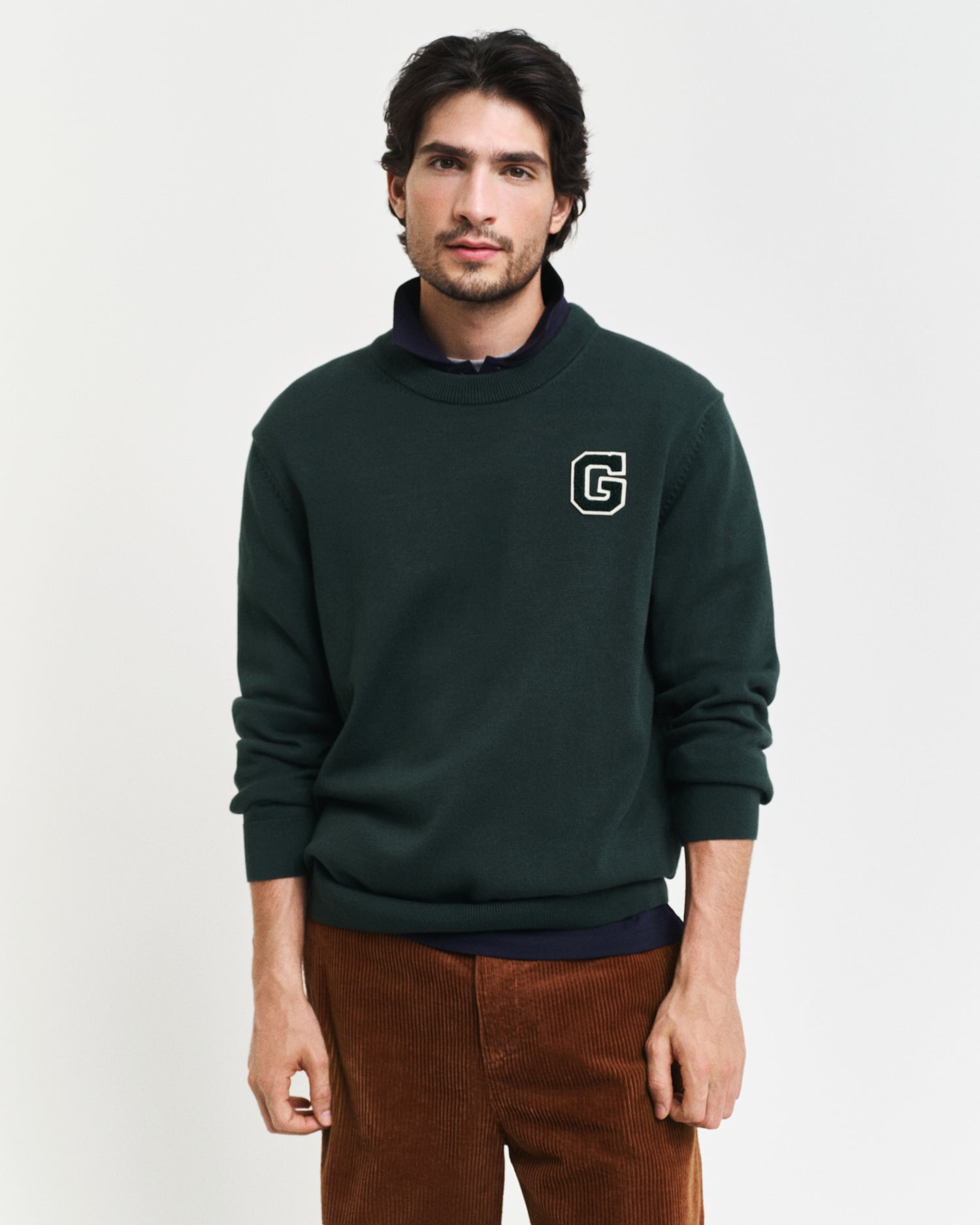 Kolej modasından ilham alınarak tasarlanan kazak, pamuk kullanılarak tasarlanmıştır ve göğüste peluş ve keçe kalitesinde bir G-rozetine sahiptir. Klasik bisiklet yaka ve tamamen şekillendirilmiş detaylara sahip, ayrıca yaka, etek ucu ve manşetlerde ribanalı bitişlerle tamamlanmıştır. Daha dar bir kesim isterseniz bir beden küçüğünü tercih edebilirsiniz.
