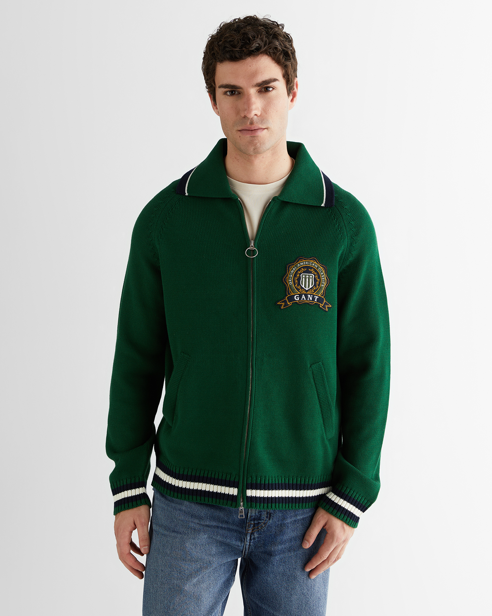 Bu şık hırka, hızla spor giyim koleksiyonunuzun vazgeçilmezi haline gelecek. Fermuarlı tasarımı ve varsity ilhamlı detaylarıyla dikkat çeker. Yakasında çizgili şeritler, göğüs kısmında grafik badge ve sırt kısmında GANT 1949 logosu yer alır. Relaxed fit bir kesime sahip olan bu hırka, ön cep detayları ve etek ucu ile manşetlerdeki kolej tarzı çizgili ribanalı bitişlerle tamamlanmıştır. Daha dar bir görünüm için bir beden küçük tercih etmenizi öneririz. Benzer renklerle yıkayın. Ters çevirerk yıkayın ve ütüleyin. Detaylı bakım talimatları için ürün etiketini kontrol edin.
