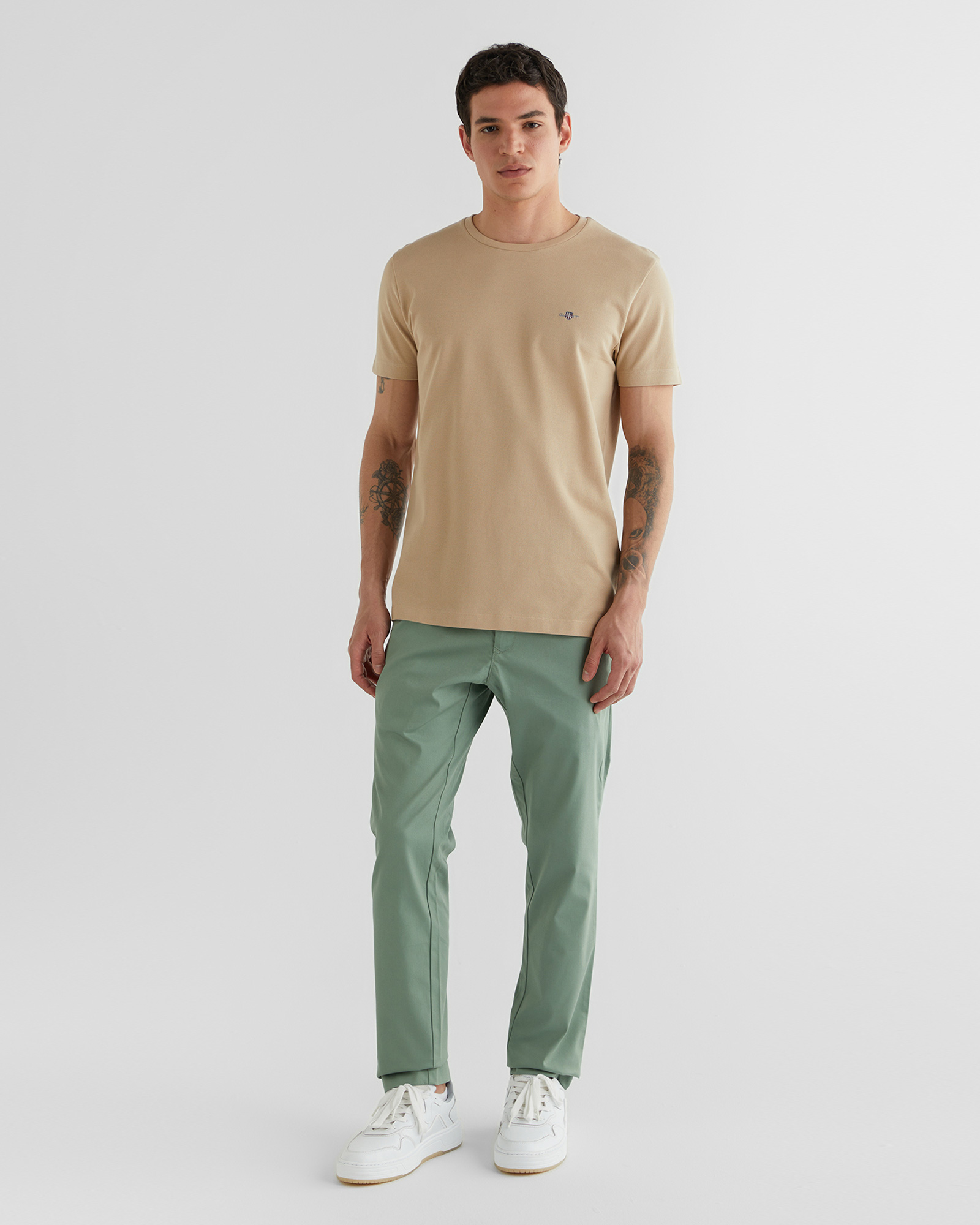 Bu sportif GANT chino pantolon, slim fit kesimi ve vücudu dengeli şekilde saran orta bel yüksekliği ile modern ve şık bir görünüm sunuyor. Hareket özgürlüğü sağlayan aktif tasarım detaylarına sahip olan model, bel bandında iç destek şeridi ile ekstra konfor sağlıyor. Ön düğme kapama, eğik ön cepler ve küçük bozuk para cebiyle fonksiyonelliği artıran pantolon, arka sağ cepte yer alan zarif GANT logosuyla tamamlanıyor. Günlük stilinizi sportif bir dokunuşla tamamlamak için mükemmel bir seçim.