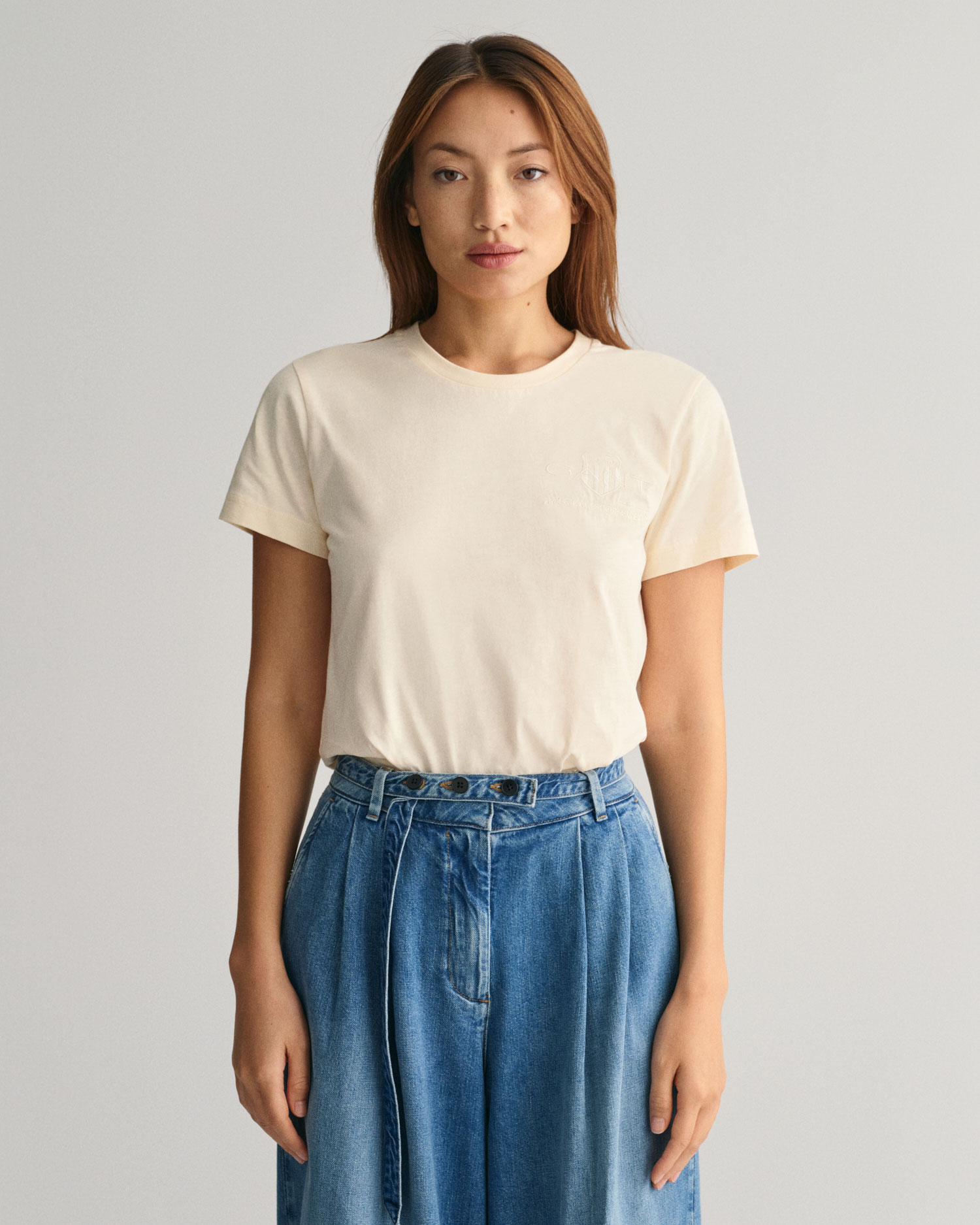 GANT Kadın Bej Regular Fit Bisiklet Yaka Logolu T-shirt