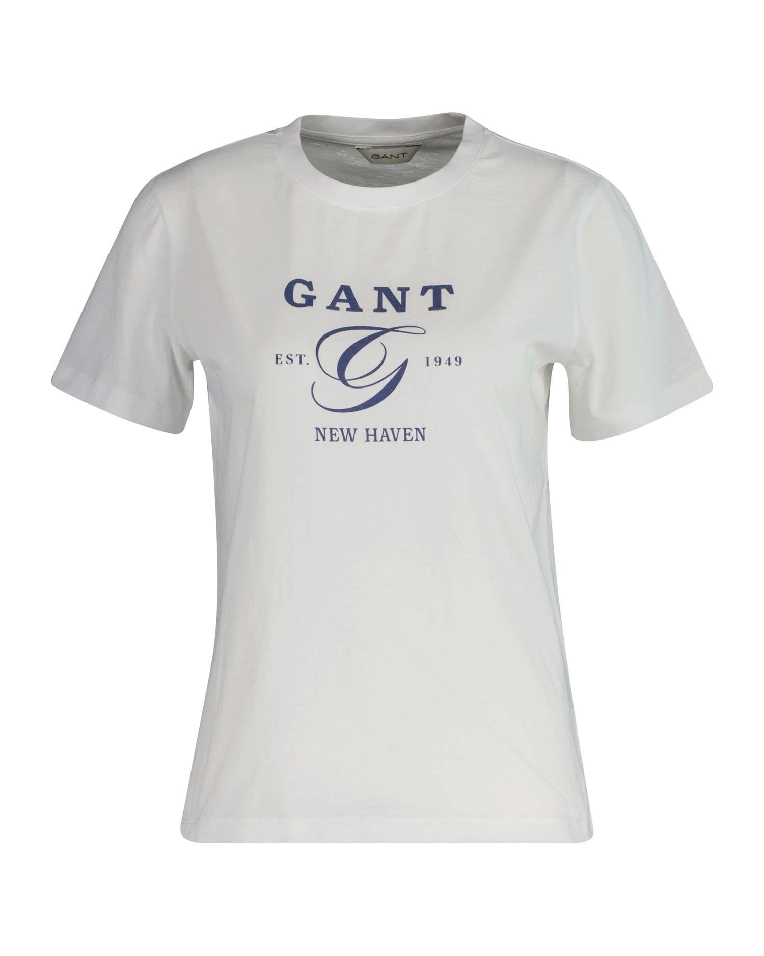 GANT Kadın Beyaz Regular Fit Bisiklet Yaka Logolu T-Shirt